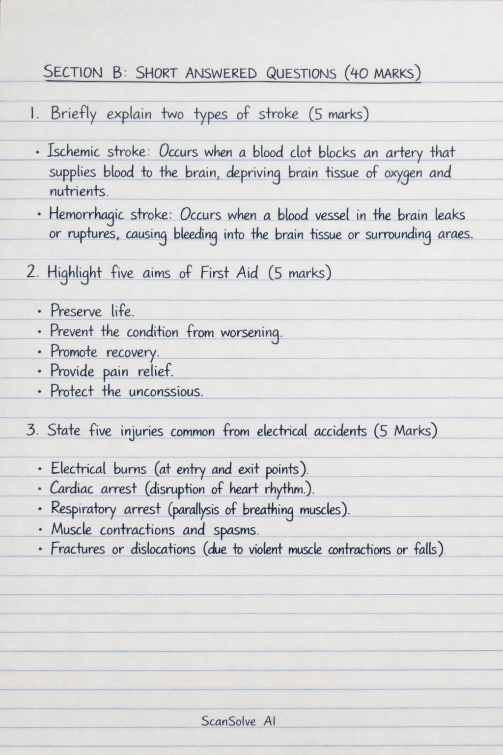 1. Briefly explain two types of stroke (5 marks)