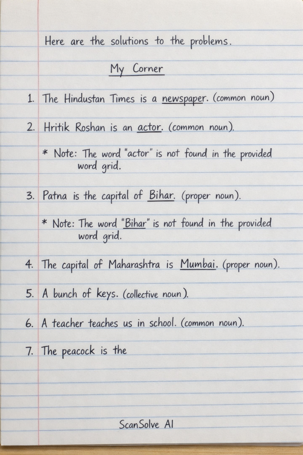 4. The capital of Maharashtra is Mumbai. (proper noun)