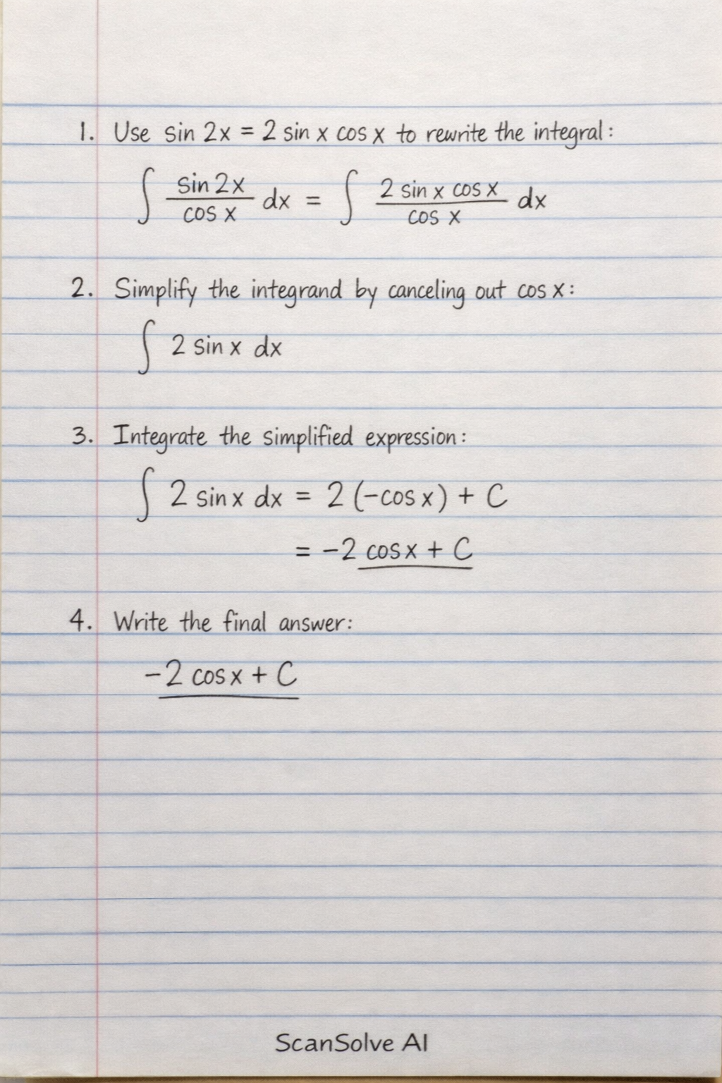Step 1: Use the double angle identity for sine, sin2x=2sinxcosx, to rewrite the integrand.
