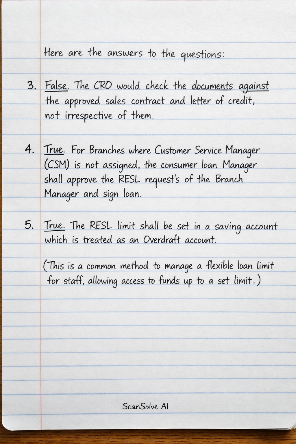 4. For Branches where Customer Service Manager (CSM) is not assigned, the consumer loan Manager shall approve the RESL request's of the Branch Manager and sign loan.
