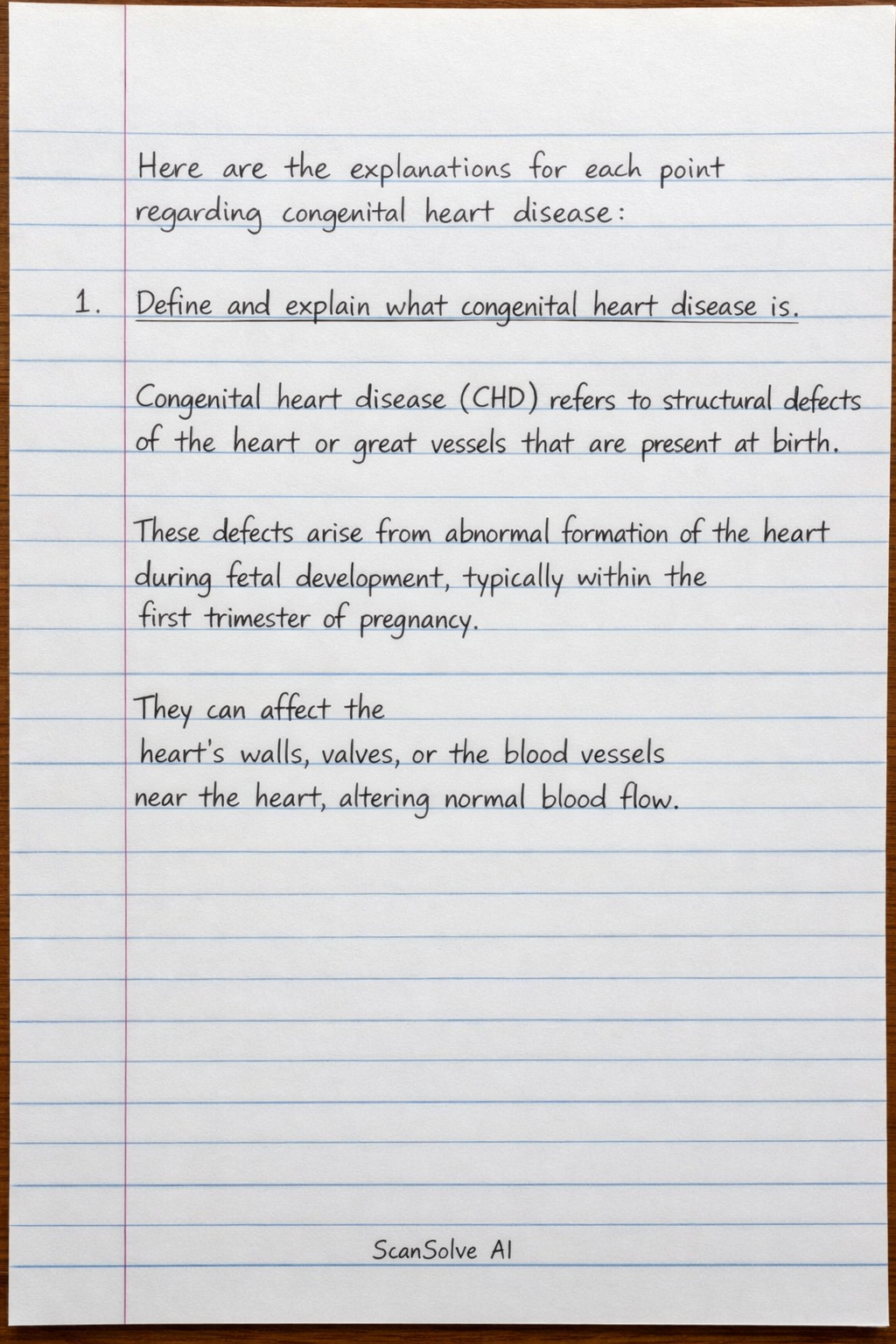 1. Define and explain what congenital heart disease is.