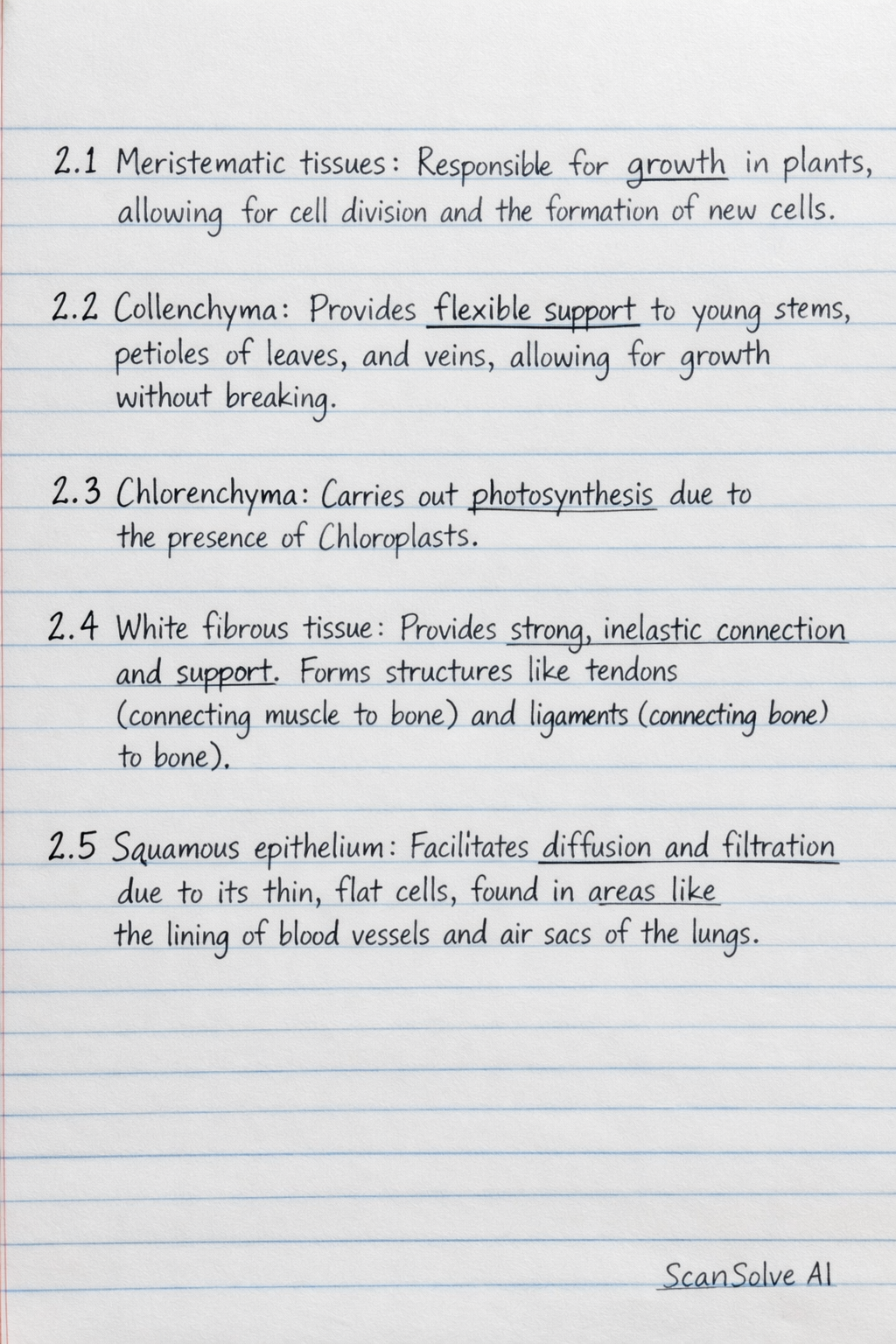 2.1 Meristematic tissues: Responsible for growth* in plants, allowing for cell division and the formation of new cells.