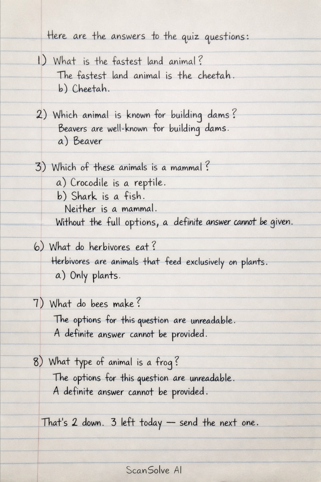 1) What is the fastest land animal? The fastest land animal is the cheetah. b) Cheetah 2) Which animal is known for building dams? Beavers are well-known for building dams. a) Beaver 3) Which of these animals is a mammal? The options for this questi…