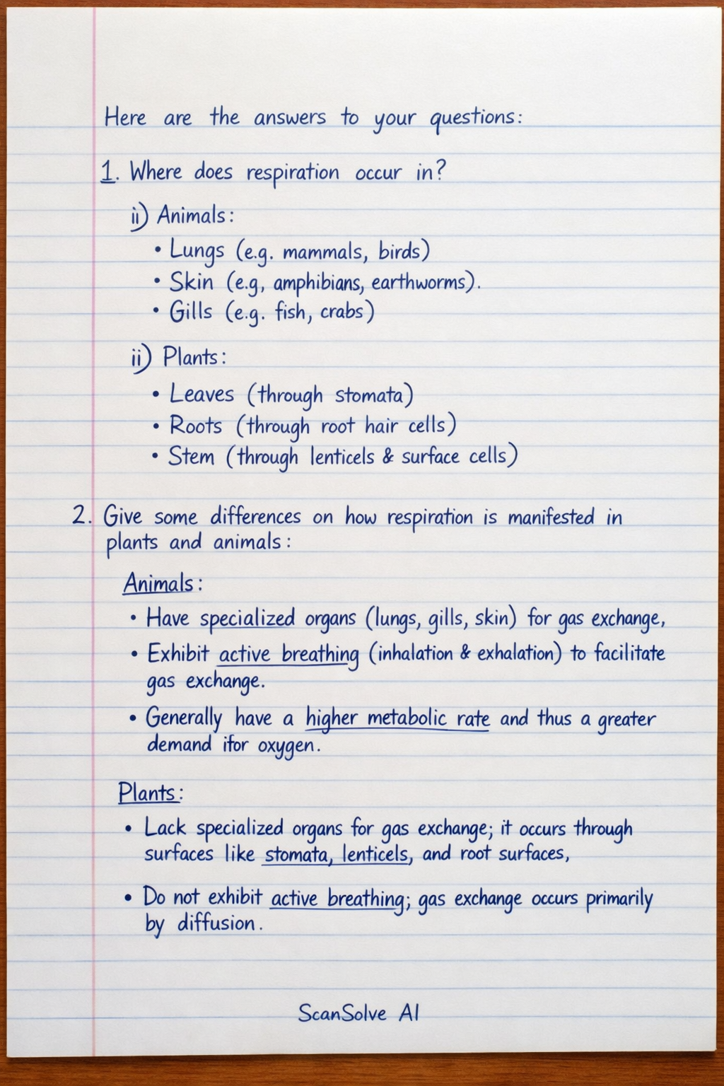 Have specialized organs* (lungs, gills, skin) for gas exchange.