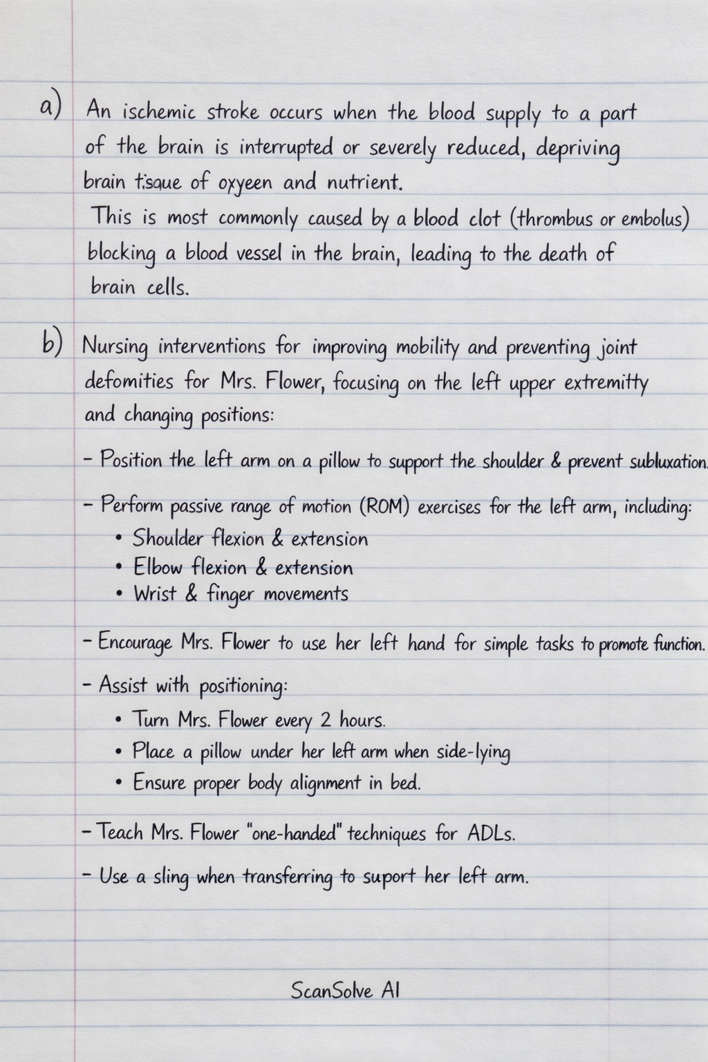 Nursing interventions for improving mobility and preventing joint deformities for Mrs. Flower, focusing on the left upper extremity and changing positions: