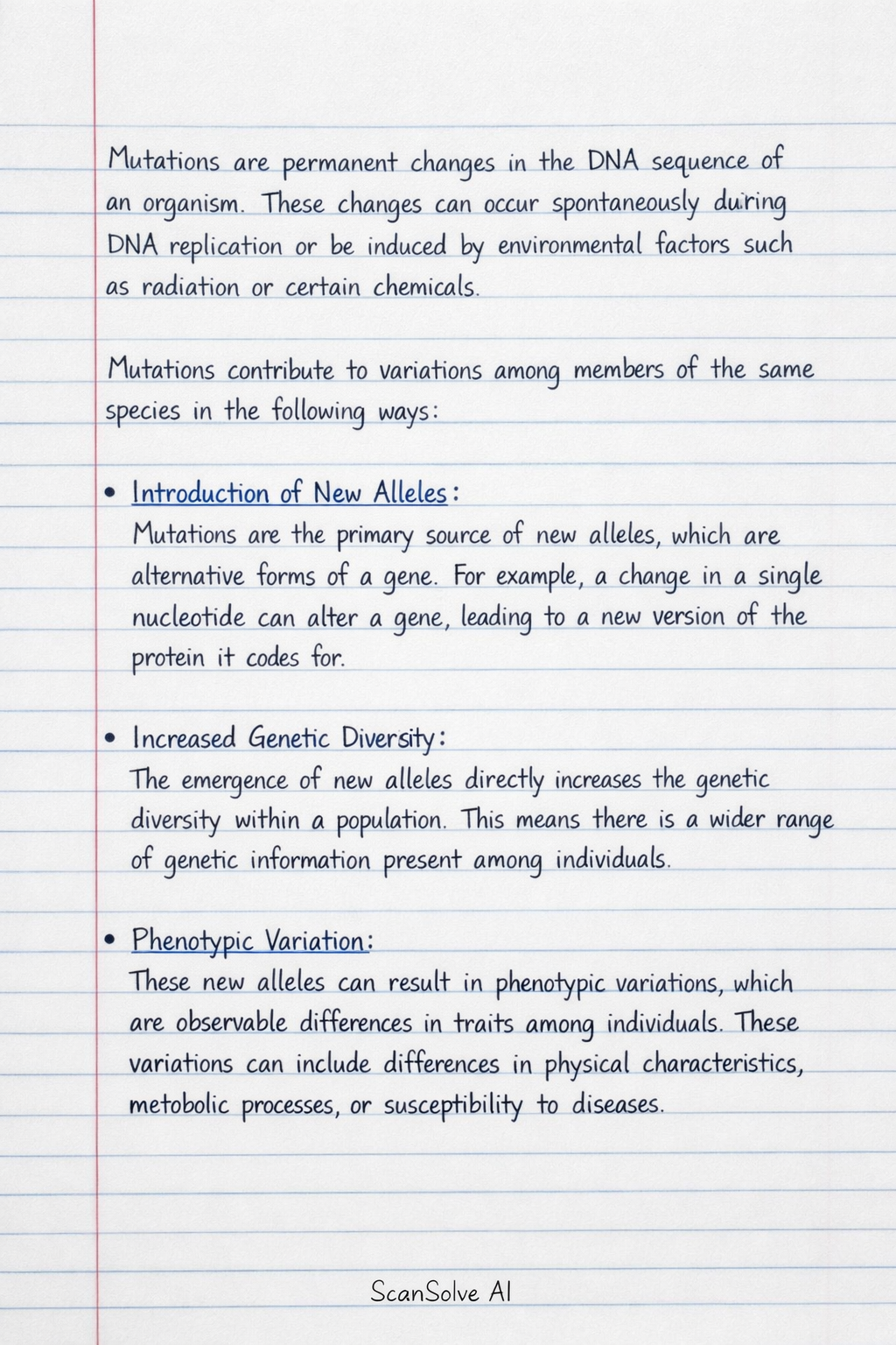 - Phenotypic Variation: These new alleles can result in phenotypic variations, which are observable differences in traits among individuals. These variations can include differences in physical characteristics, metabolic processes, or susceptibility to diseases.