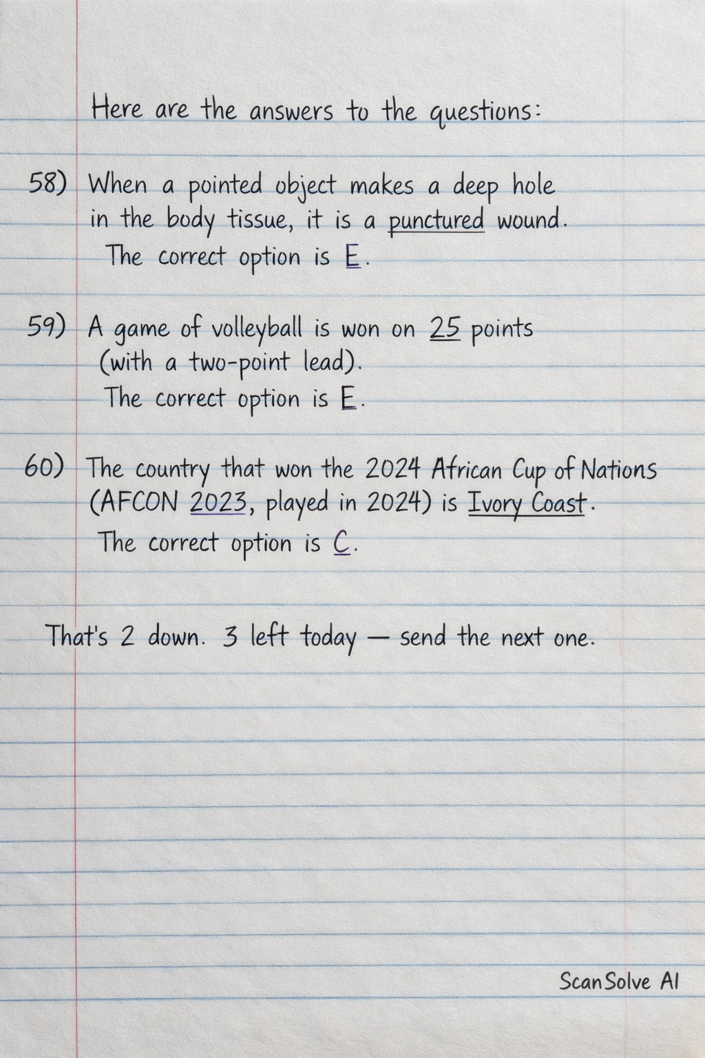 That's 2 down. 3 left today — send the next one.
