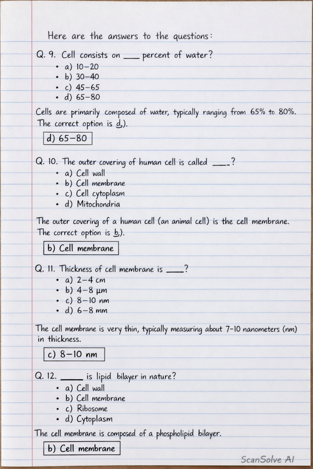 Q. 10. The outer covering of human cell is called ____?