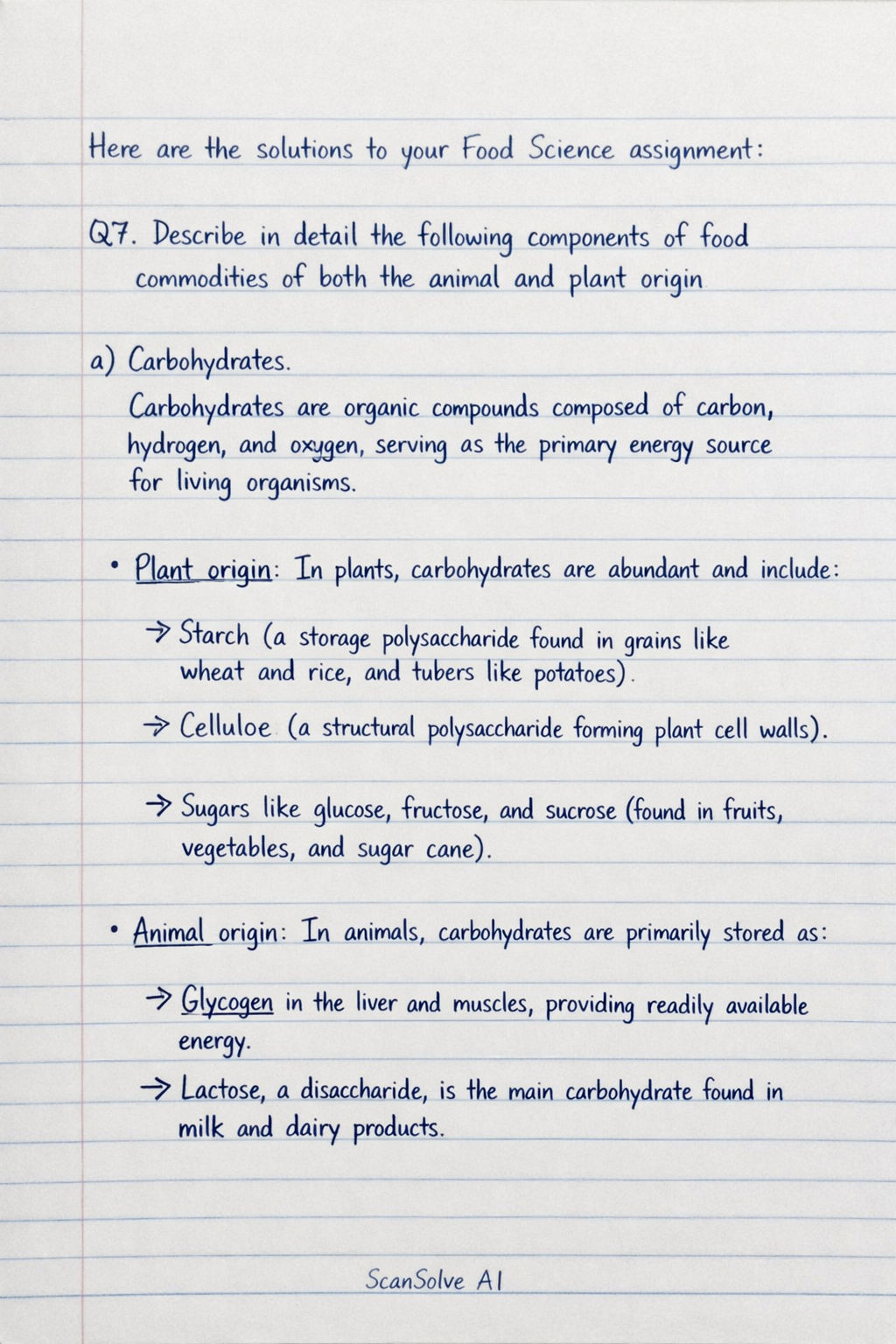 • Animal origin: In animals, carbohydrates are primarily stored as glycogen in the liver and muscles, providing readily available energy. Lactose, a disaccharide, is the main carbohydrate found in milk and dairy products.