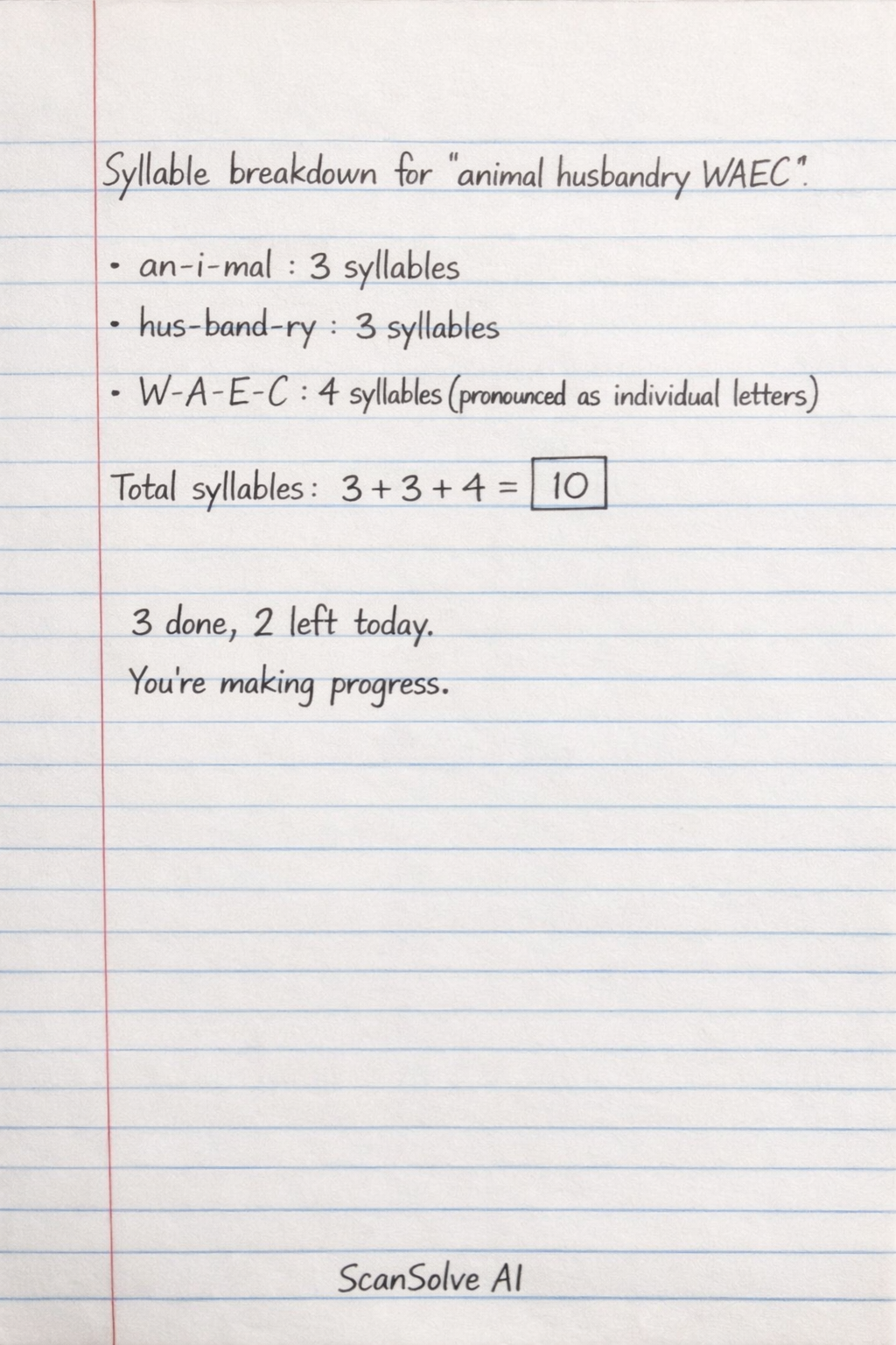Here is the syllable breakdown for "animal husbandry WAEC":