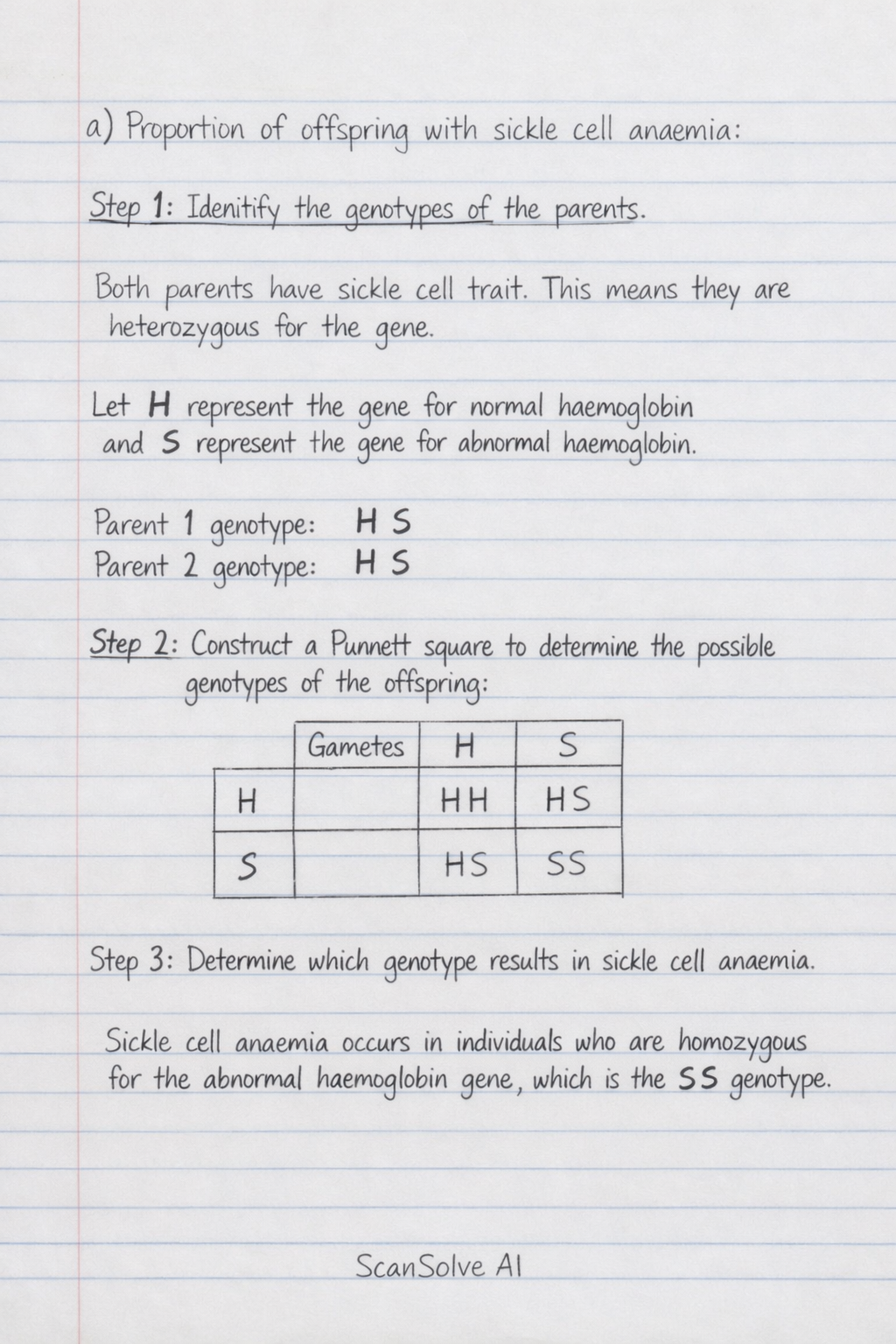 Step 3: Determine which genotype results in sickle cell anaemia.
