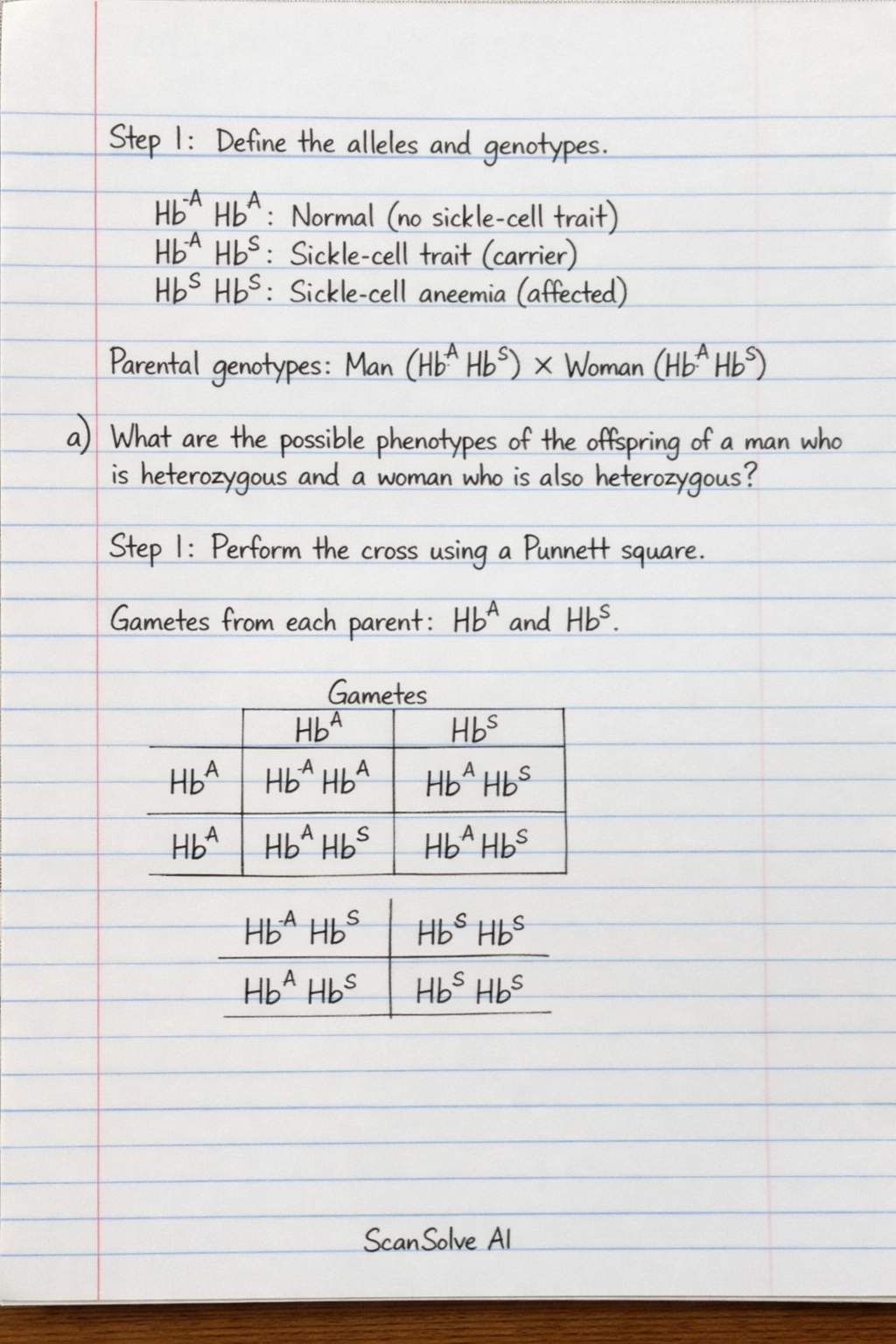a) What are the possible phenotypes of the offspring of a man who is heterozygous and a woman who is also heterozygous?