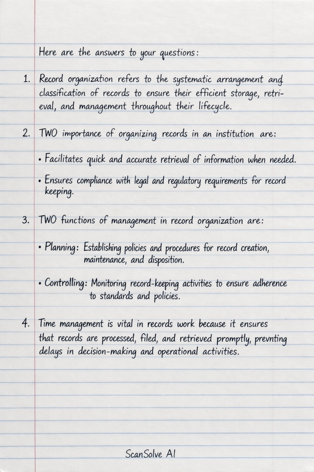 • Controlling: Monitoring record-keeping activities to ensure adherence to standards and policies.