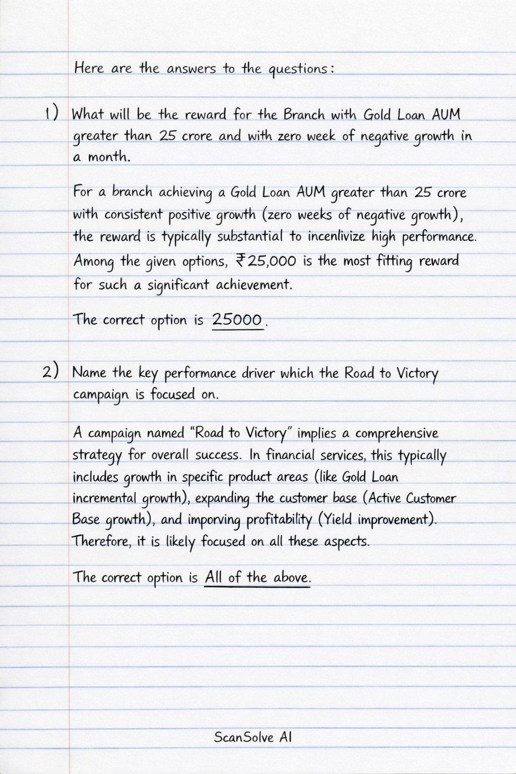 A campaign named "Road to Victory" implies a comprehensive strategy for overall success. In financial services, this typically includes growth in specific product areas (like Gold Loan incremental growth), expanding the customer base (Active Customer Base growth), and improving profitability (Yield improvement). Therefore, it is likely focused on all these aspects.