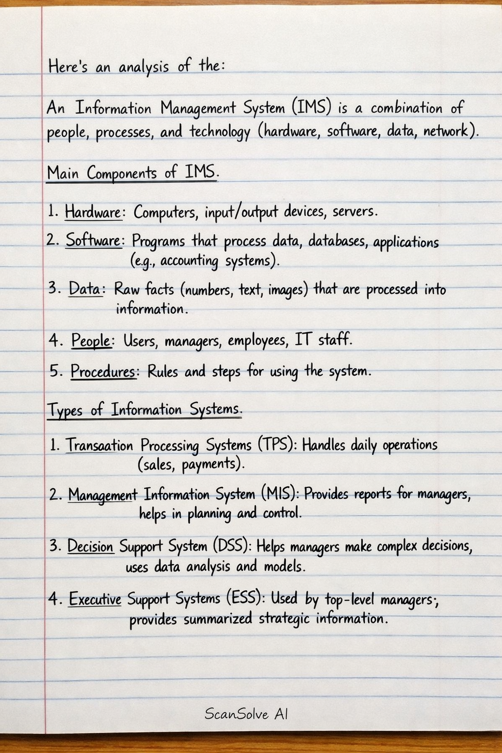 An Information Management System (IMS) is a combination of people, processes, and technology (hardware, software, data, network).