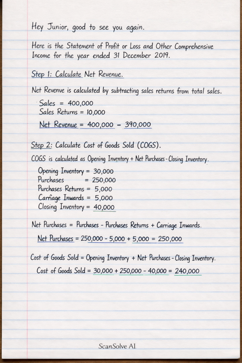 Step 2: Calculate Cost of Goods Sold (COGS).