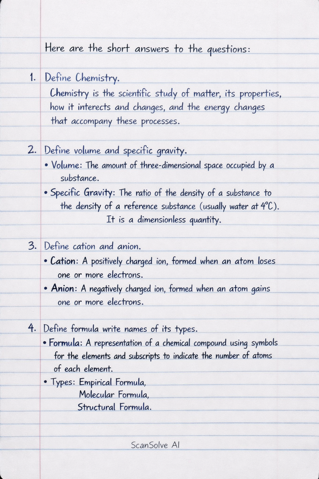 Define Chemistry. Chemistry is the scientific study of matter, its properties, how it interacts and changes, and the energy changes that accompany these processes.