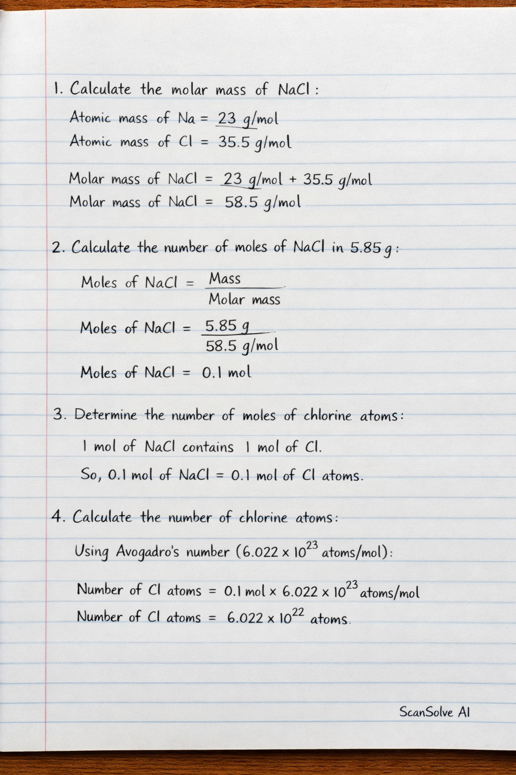 - Step 1: Calculate the molar mass of NaCl.