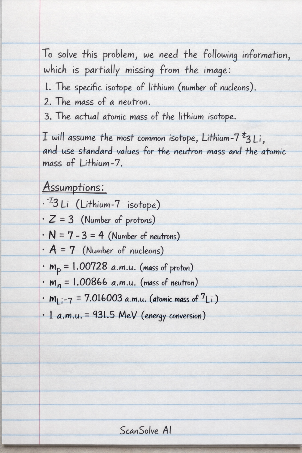 I will assume the most common isotope, Lithium-7 (), and use standard values for the neutron mass and the atomic mass of Lithium-7.