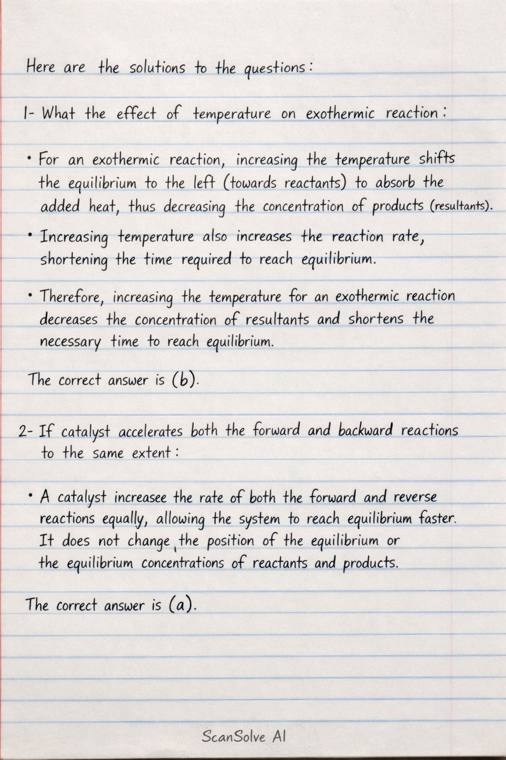 1- What the effect of temperature on exothermic reaction: