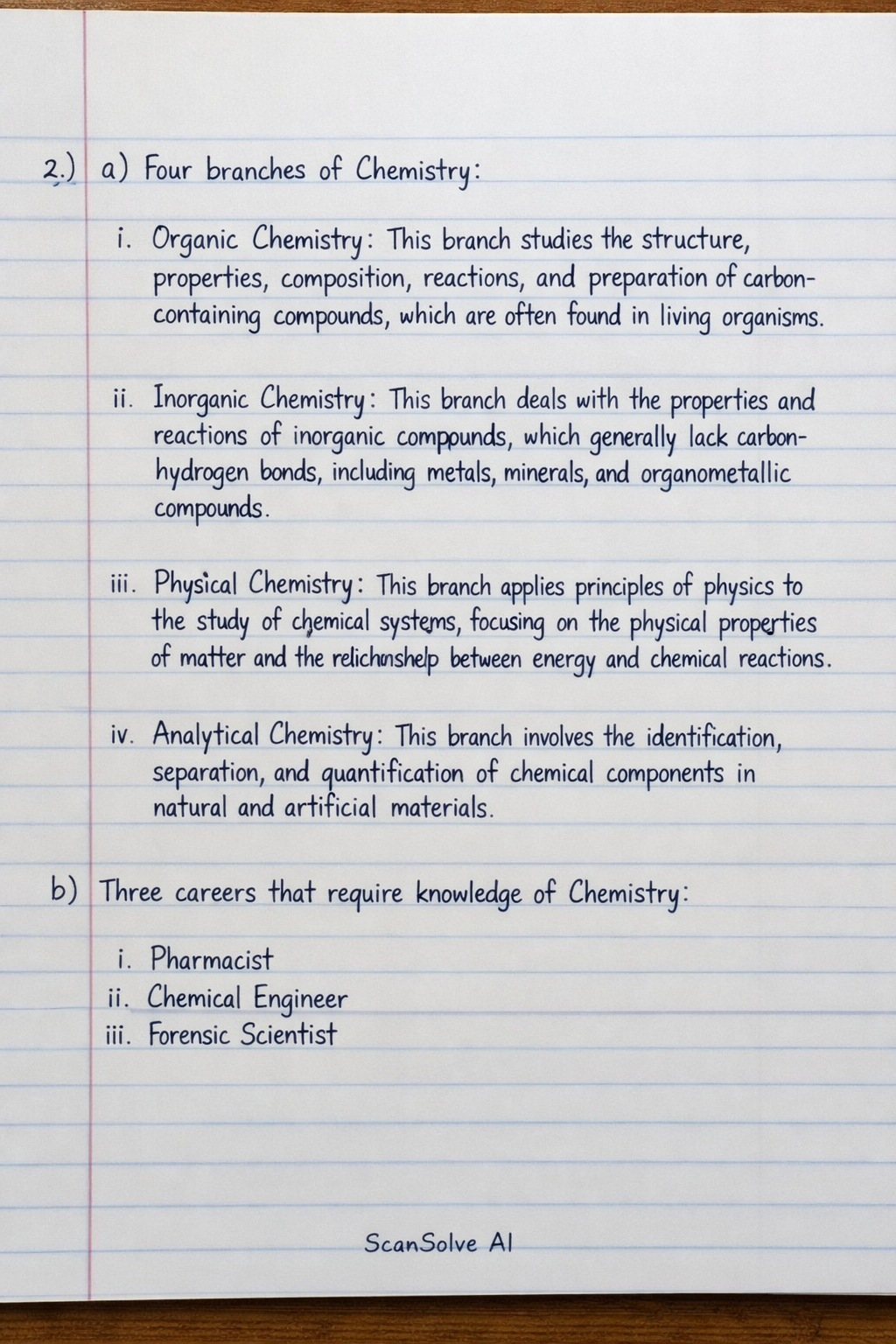 b) Three careers that require knowledge of Chemistry: i. Pharmacist ii. Chemical Engineer iii. Forensic Scientist