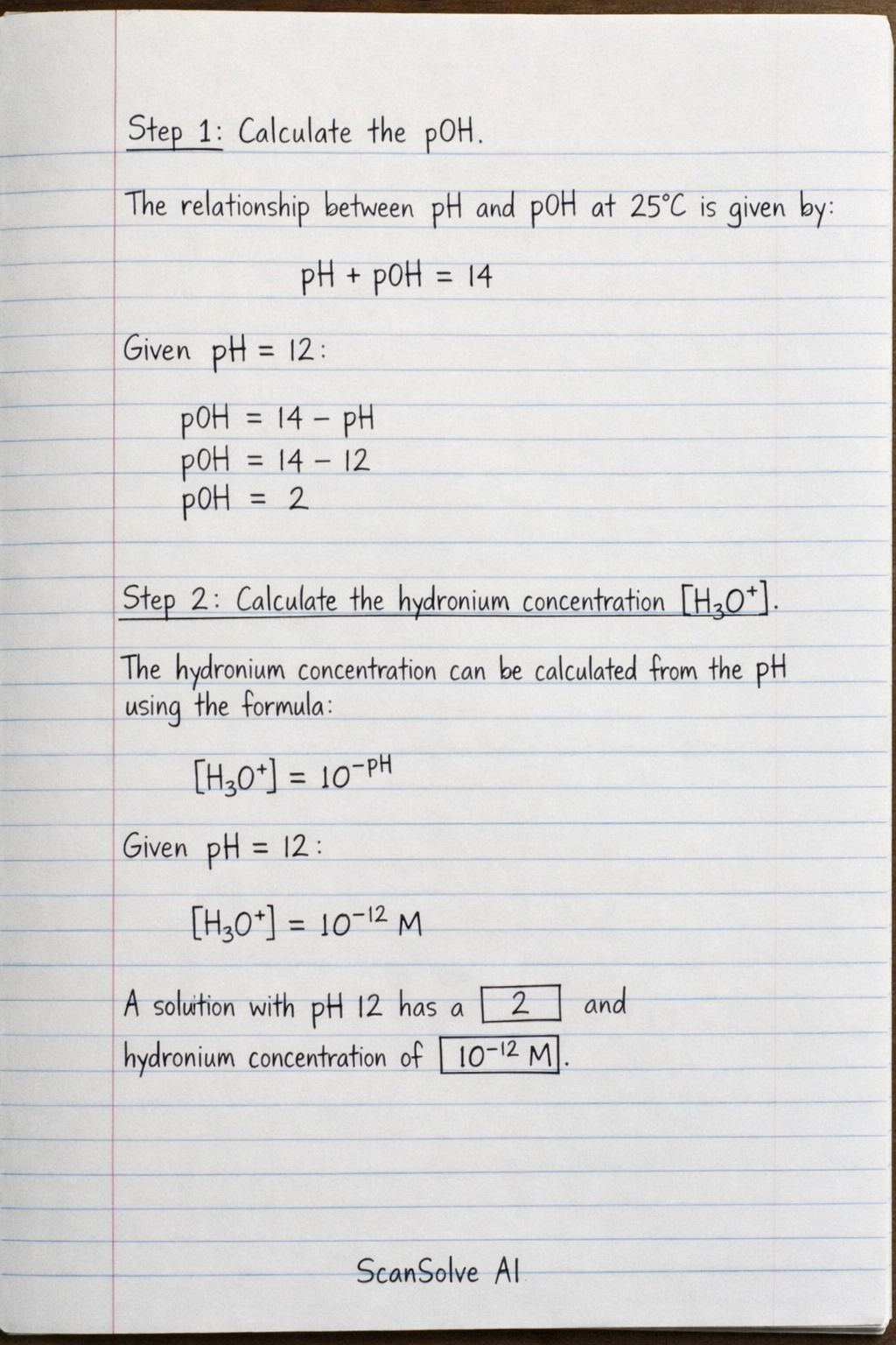 Given pH=12: