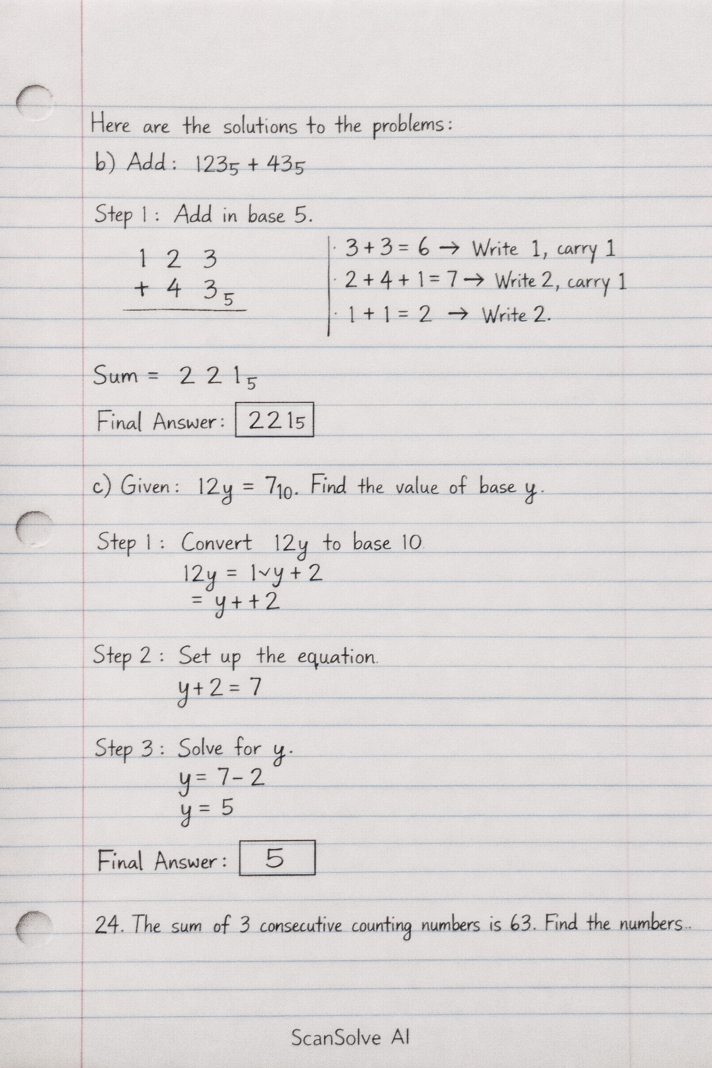 b) Add: 123five+43five