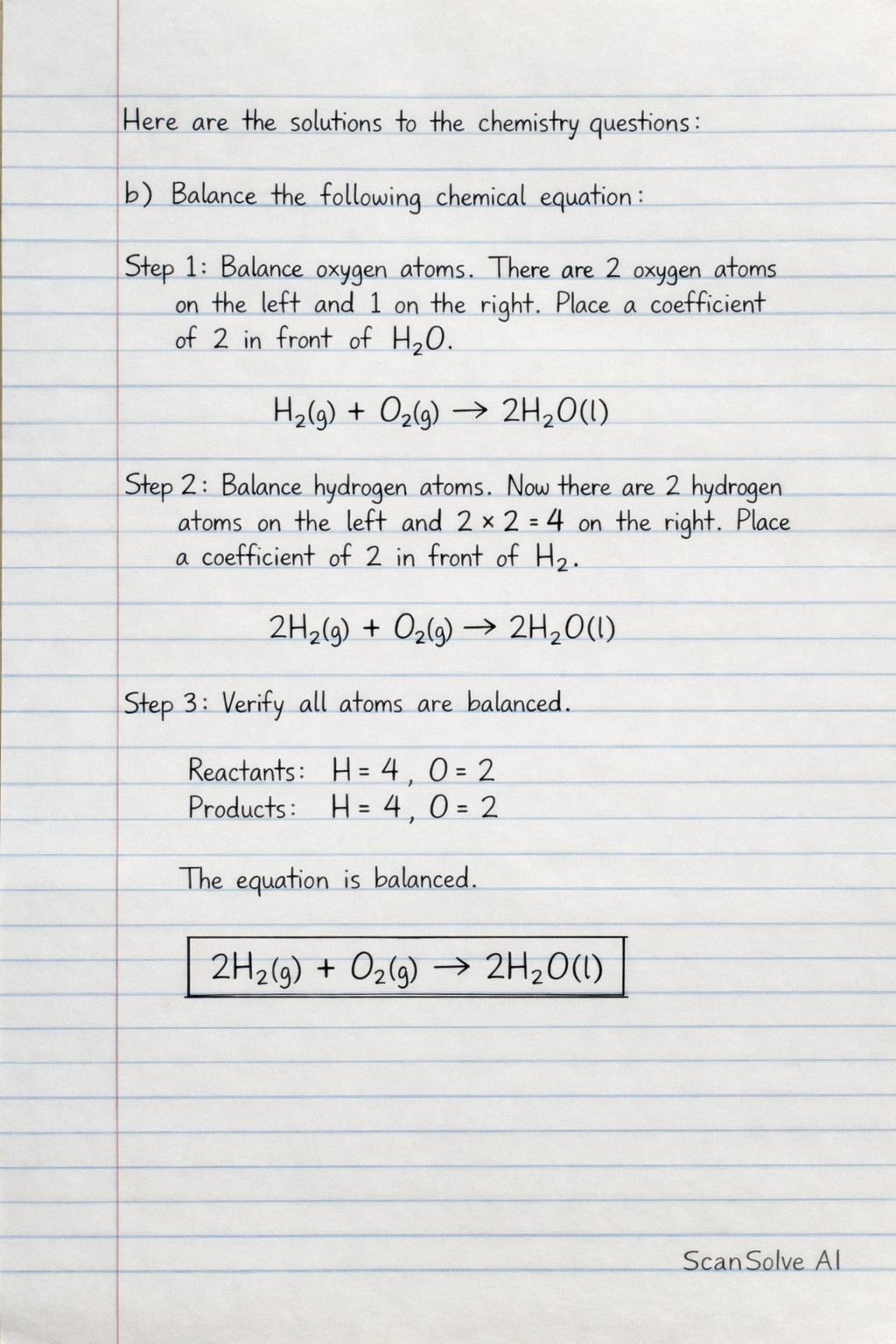 b) Balance the following chemical equation