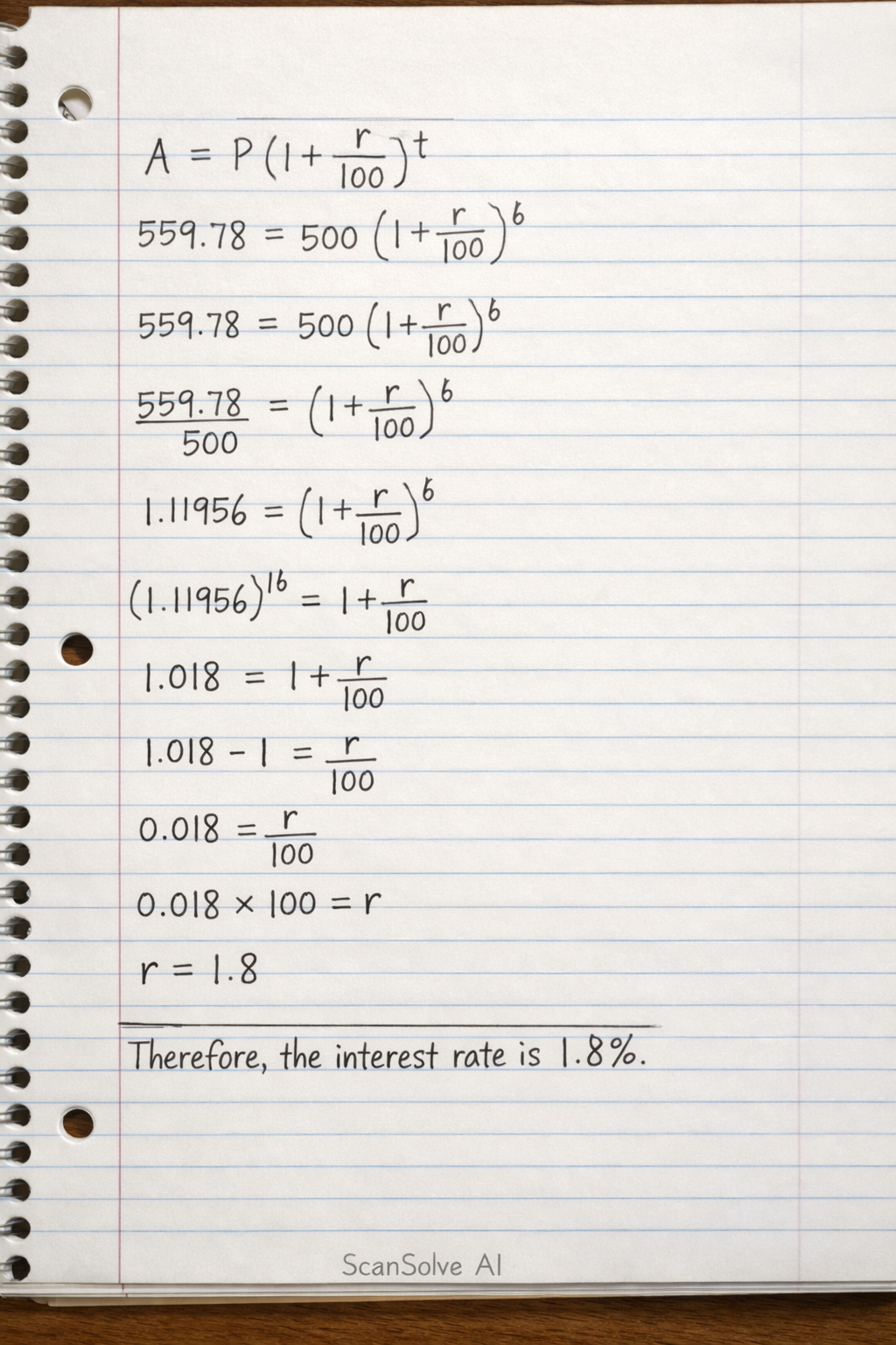 Write down the compound interest formula and substitute the given values.