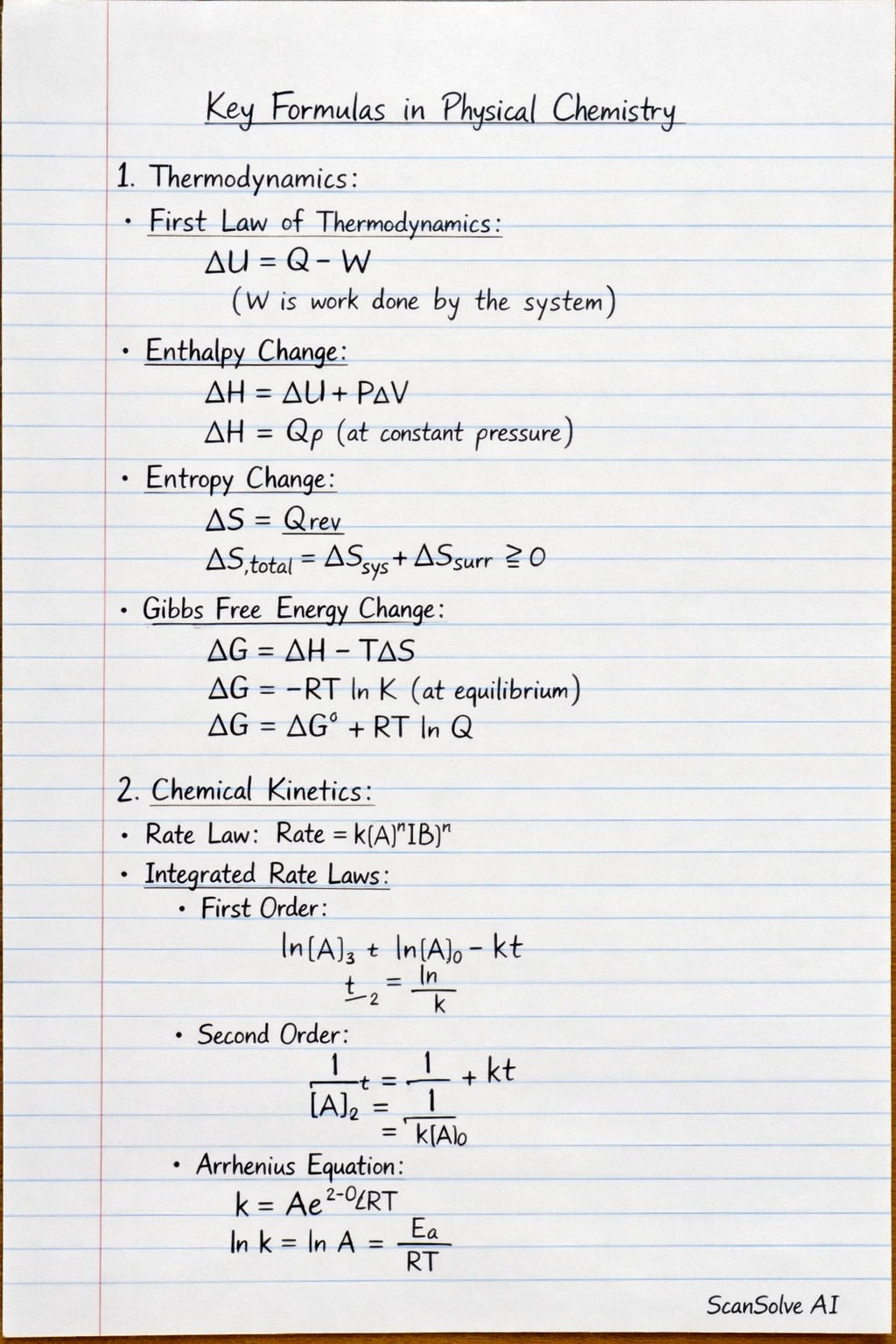 You're on a roll — here are the key formulas in Physical Chemistry for advanced level: