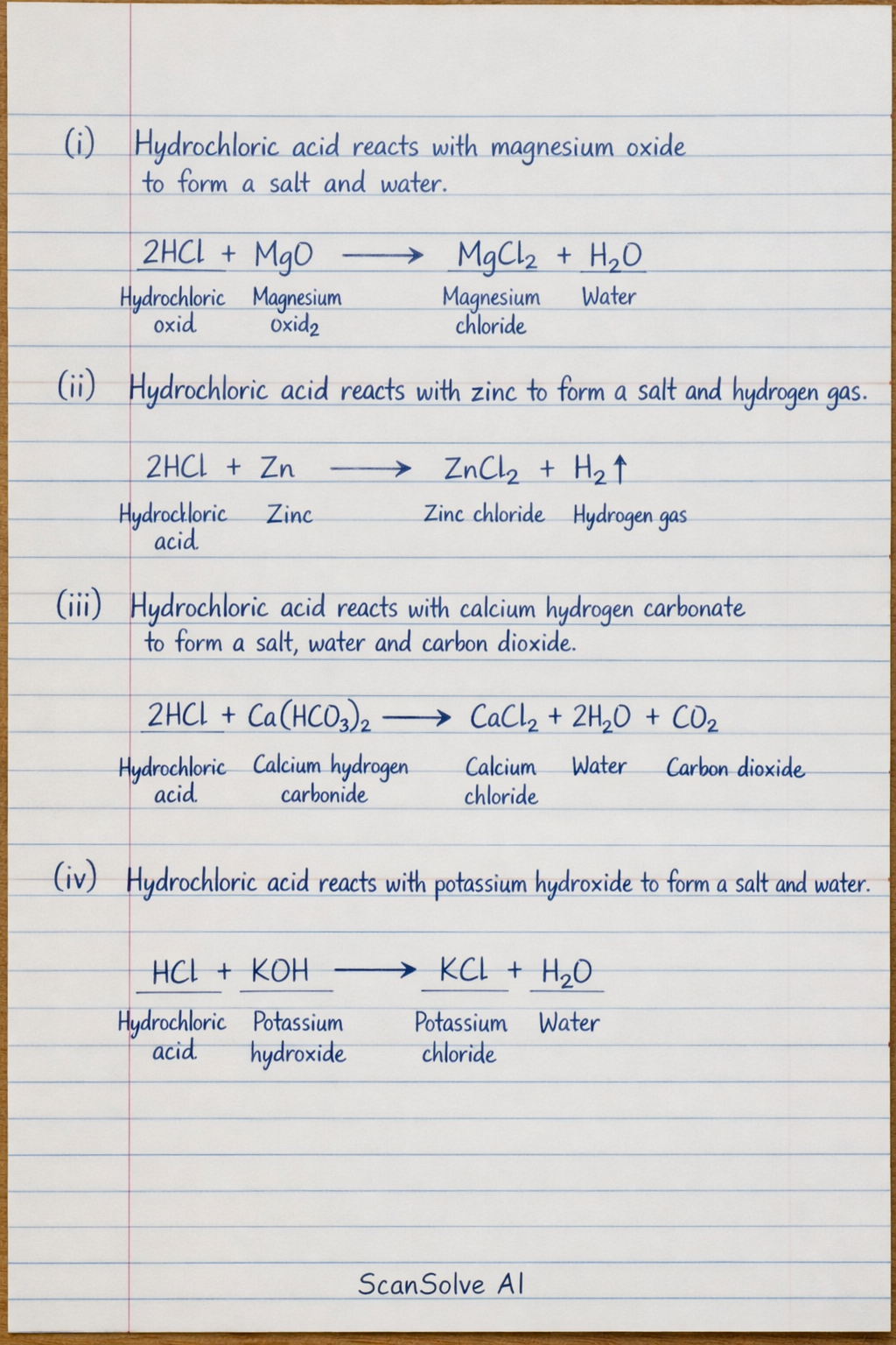 Hydrochloricacid+Magnesiumoxide⟶Magnesiumchloride+Water