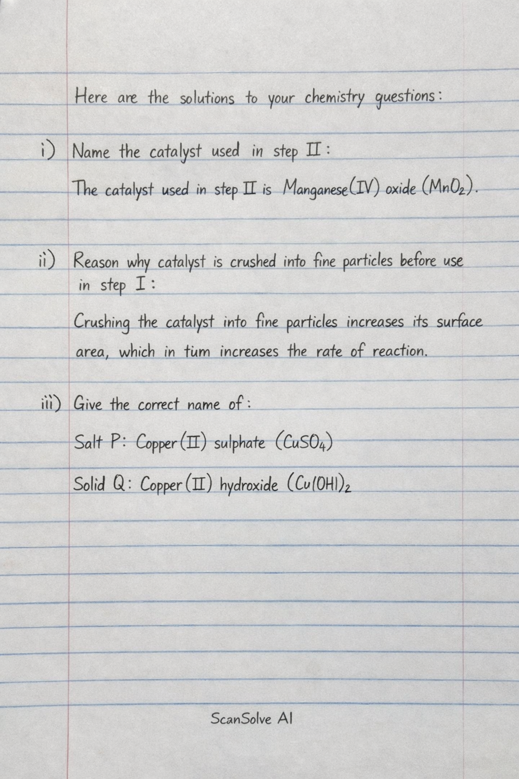 ii) Give a reason why catalyst is crushed into fine particles before use in step I: