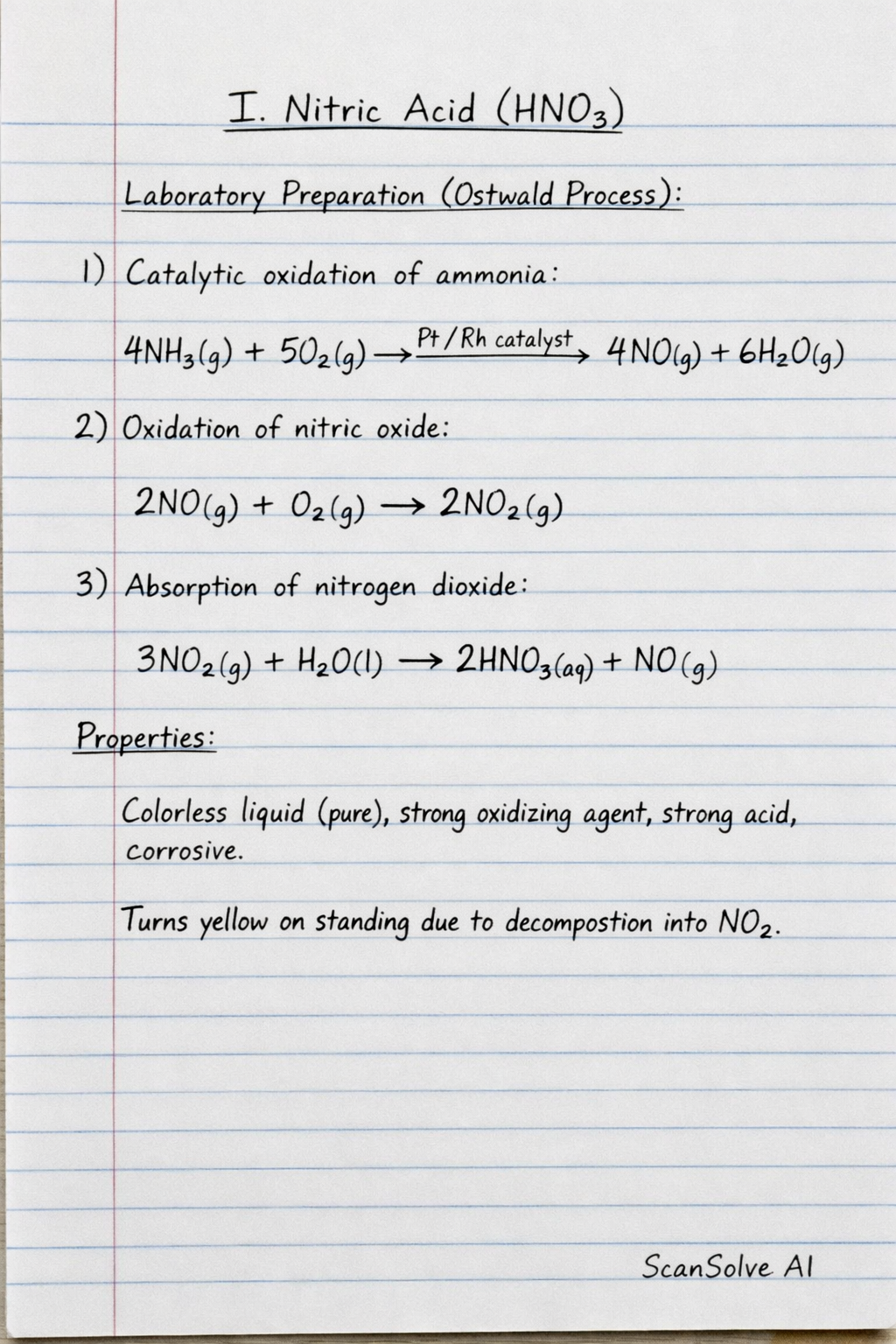 Laboratory Preparation from Ammonia (Ostwald Process): This is an industrial process, not typically a lab preparation. It involves three main steps: