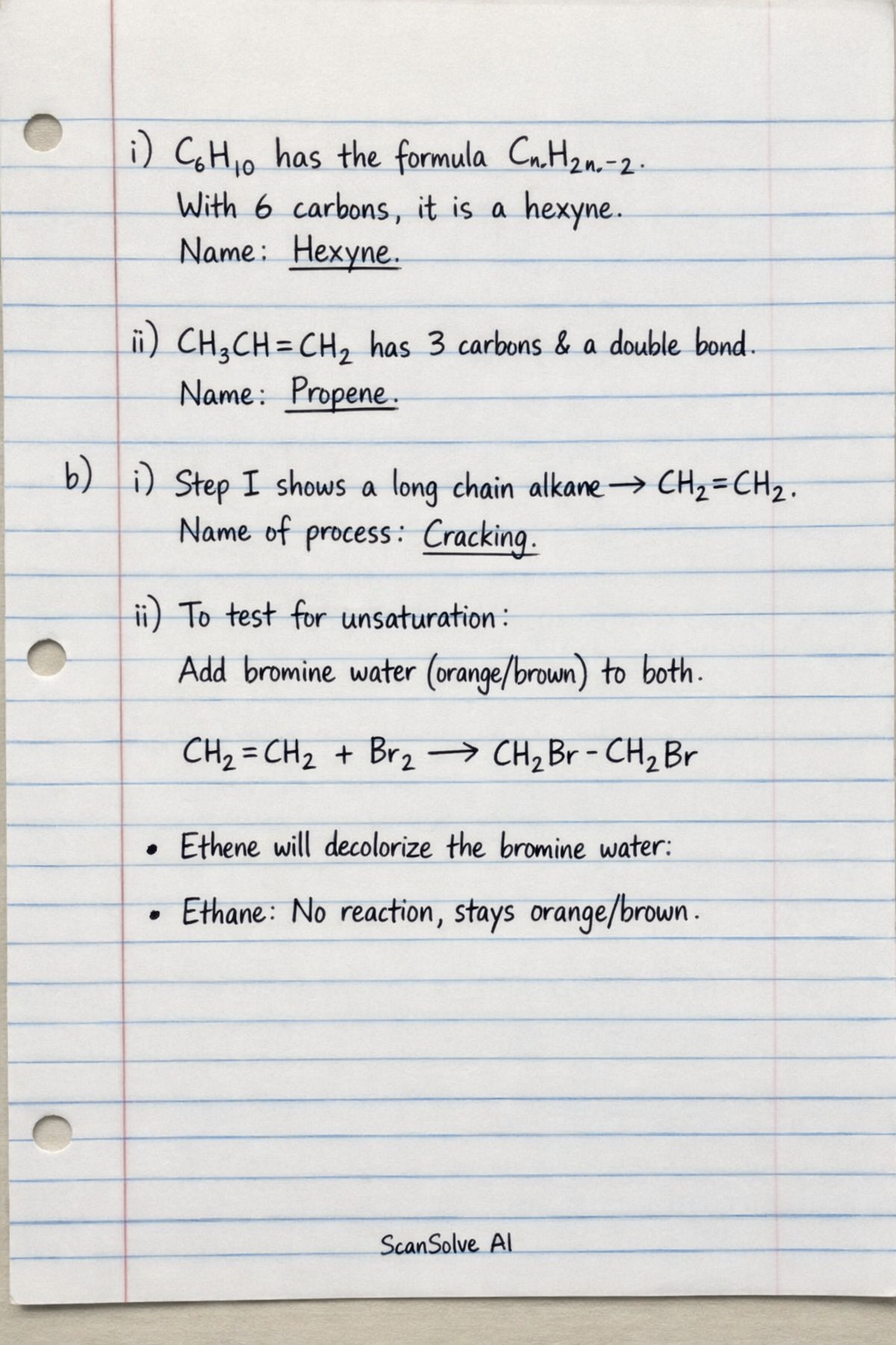 ii) To distinguish between ethene (CH₂=CH₂) and ethane (CH₃CH₃), a chemical test for unsaturation can be used.