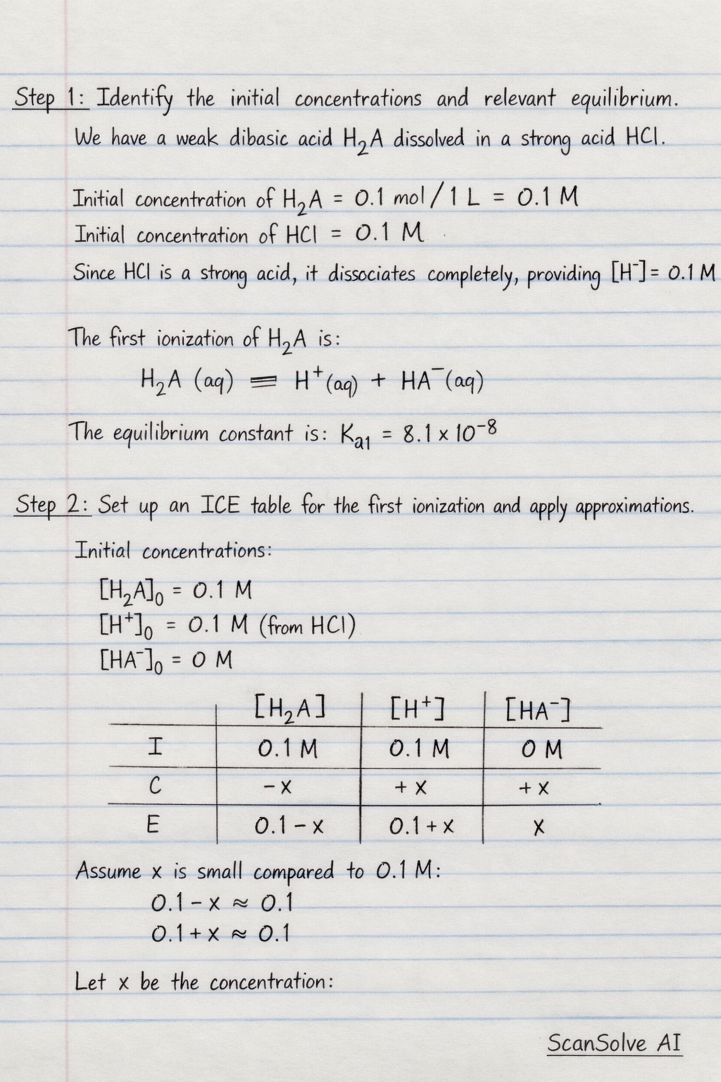 We have a weak dibasic acid H2A dissolved in a strong acid HCl.