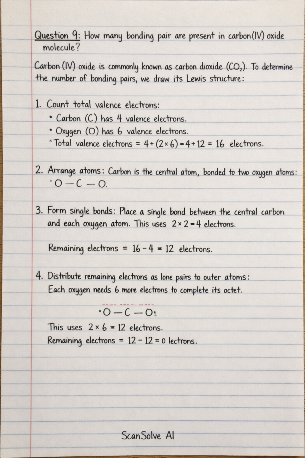 Question 9: How many bonding pair are present in carbon(IV) oxide molecule?