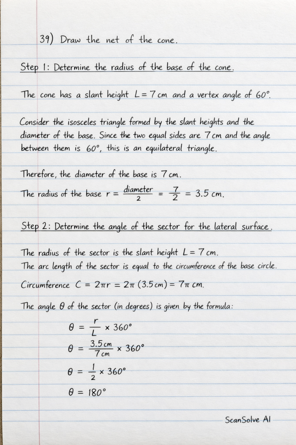 39) Draw the net of the cone.