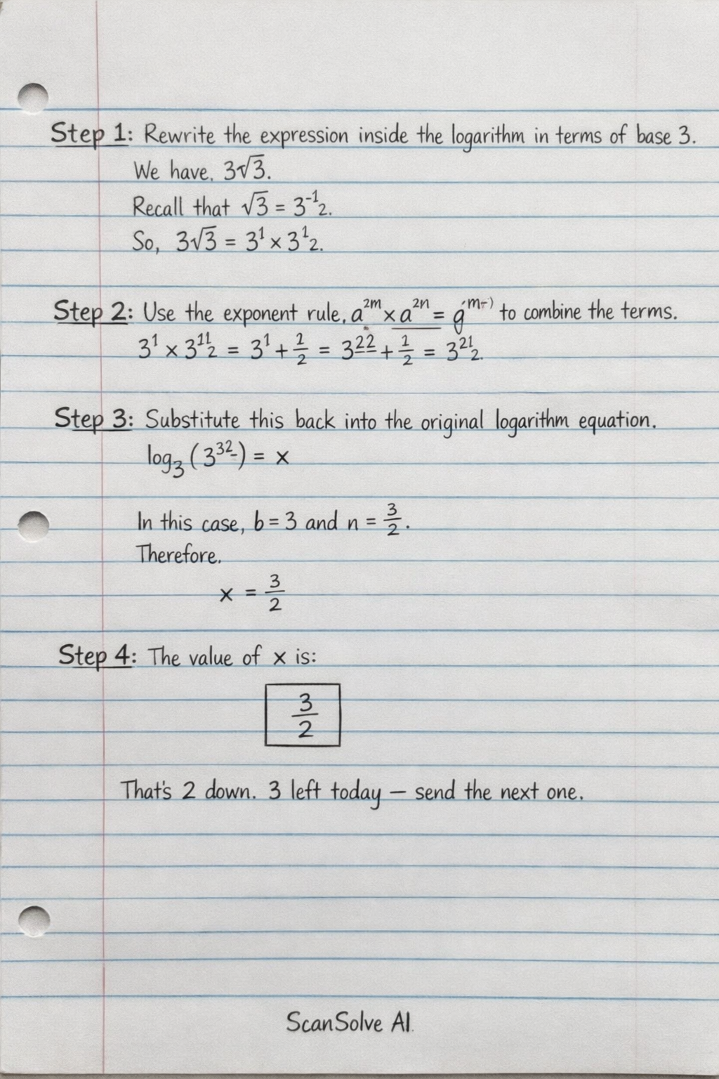 $$\log_3 (3^{\frac{3}{2}}) = x$$