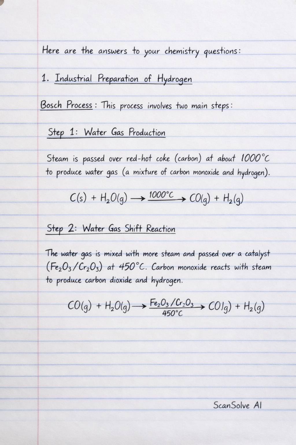 Cracking of Petroleum Fractions: Hydrogen is also produced as a byproduct during the catalytic cracking* of heavy hydrocarbon fractions from petroleum. In this process, large hydrocarbon molecules are broken down into smaller, more valuable hydrocarbons (like gasoline) and lighter gases, including hydrogen, at high temperatures and in the presence of catalysts. For example, a long-chain alkane can be cracked: