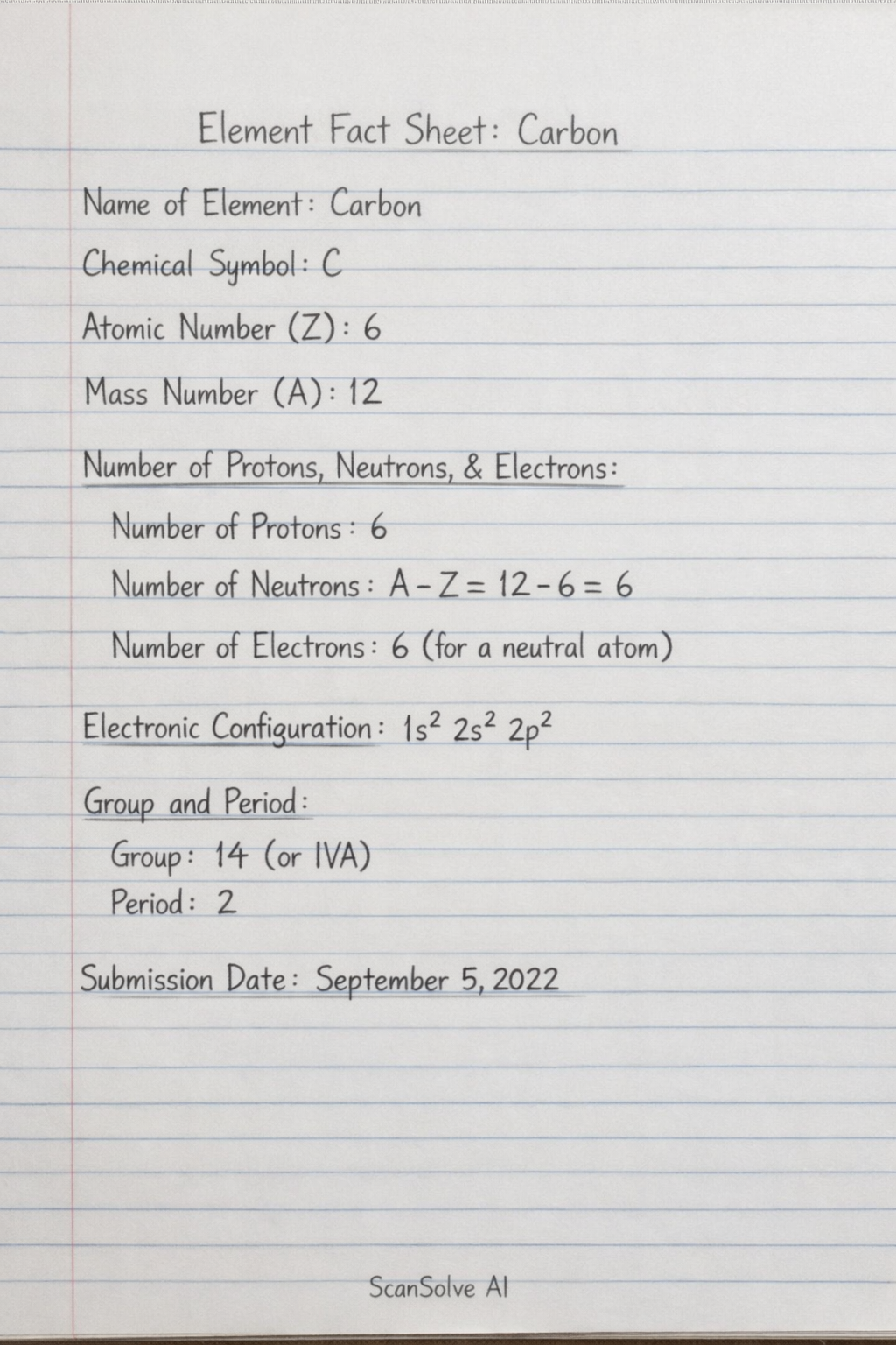 - Submission Date: (This is a date to be filled in by the student, e.g., First Chemistry lesson of the next term)
