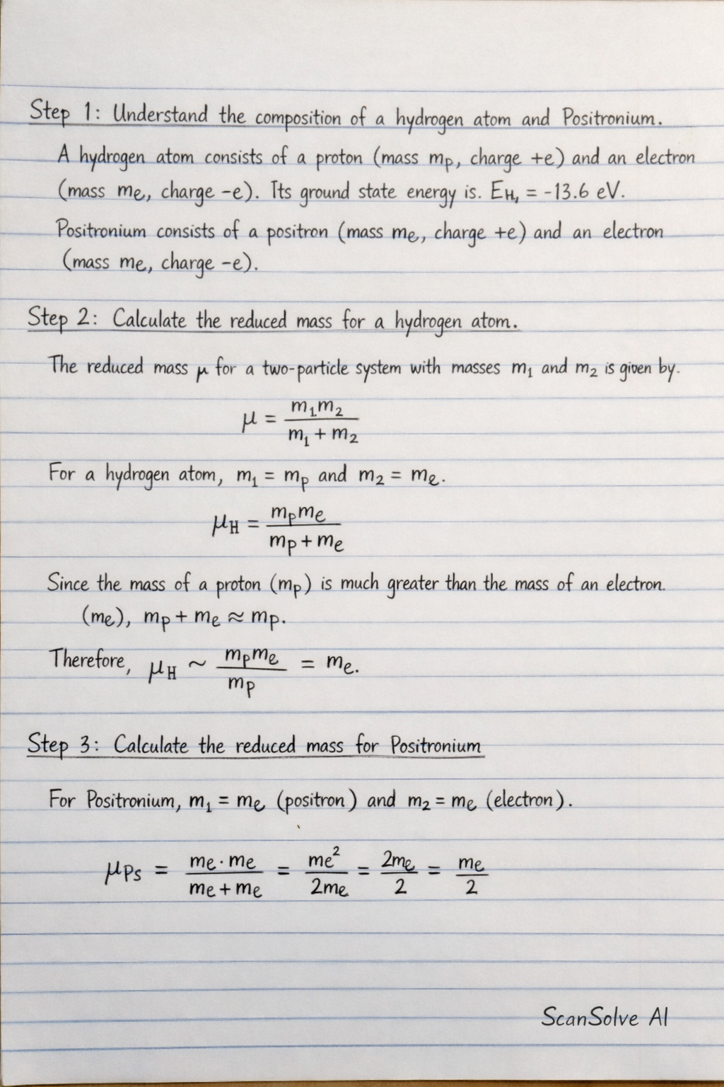 Step 3: Calculate the reduced mass for Positronium. For Positronium, (positron) and (electron).
