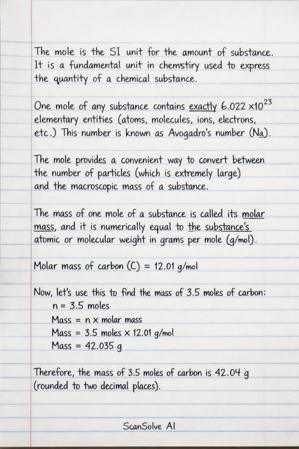 The mole provides a convenient way to convert between the number of particles (which is extremely large) and the macroscopic mass of a substance. The mass of one mole of a substance is called its molar mass, and it is numerically equal to the substance's atomic or molecular weight in grams per mole ().