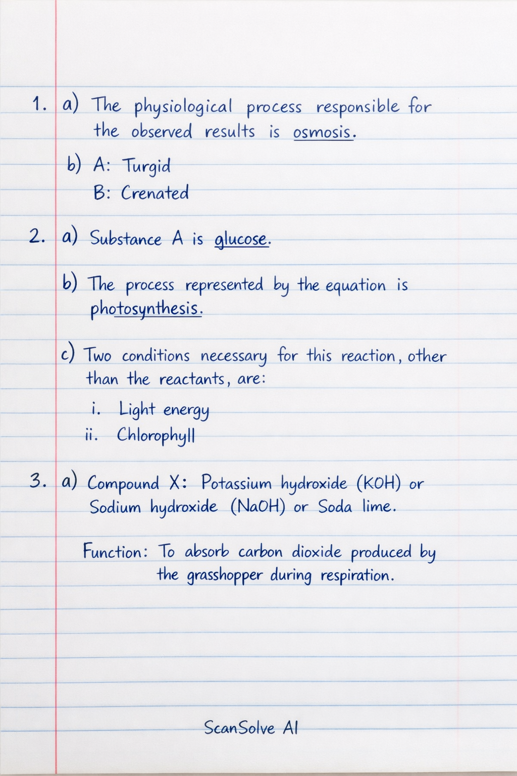 1. a) The physiological process responsible for the observed results is osmosis.
