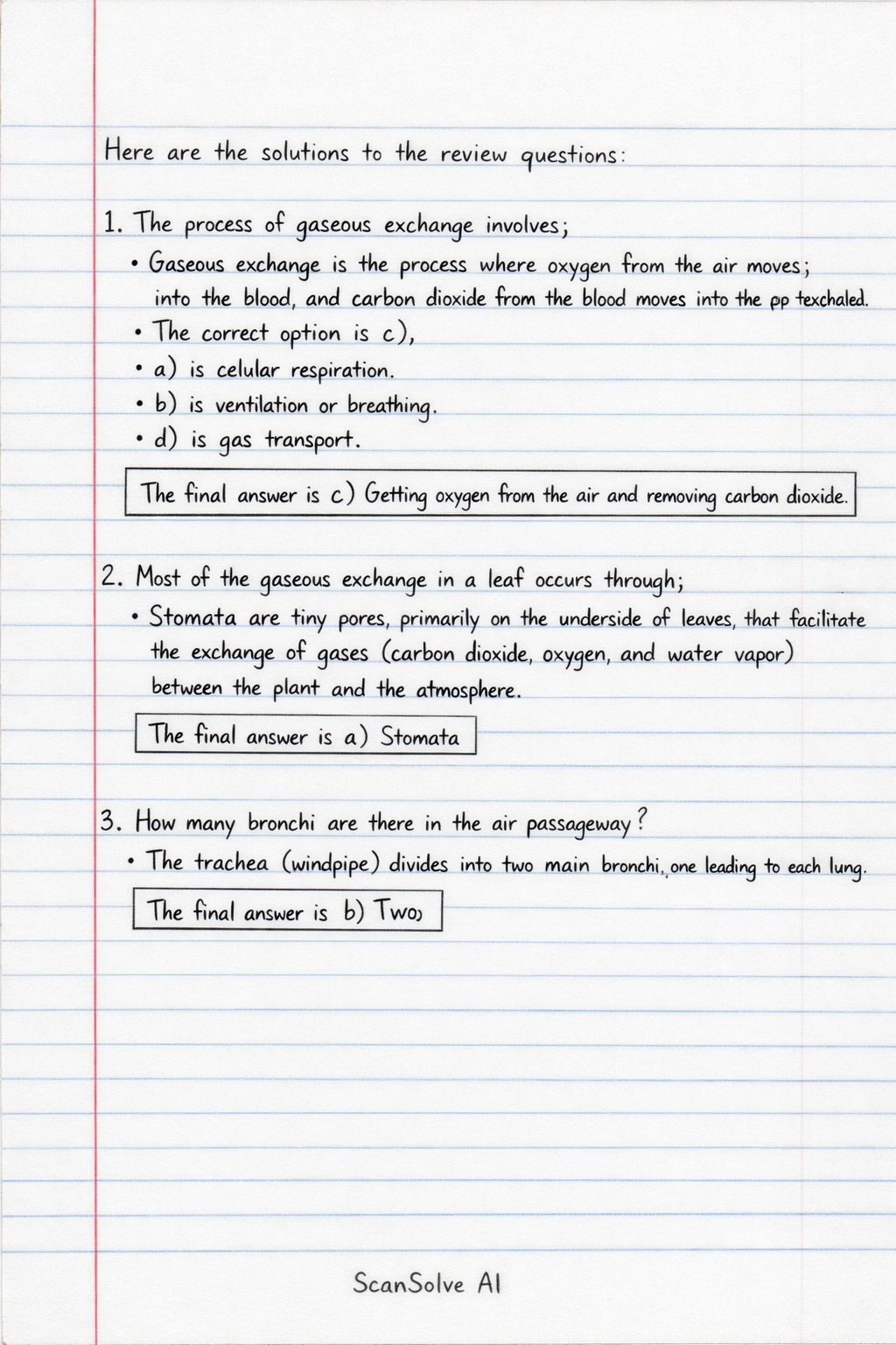 Here are the solutions to the review questions: