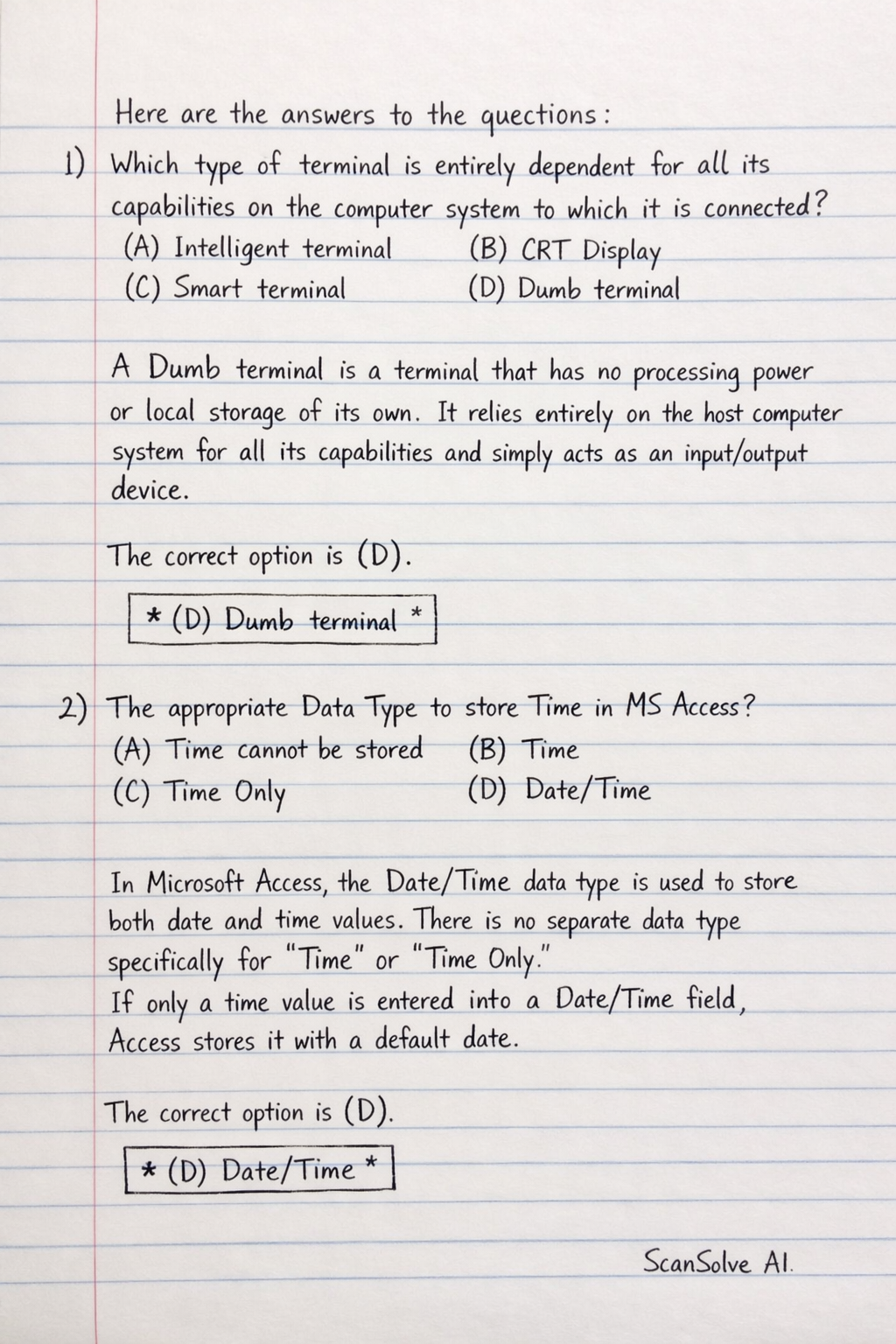(D) Dumb terminal