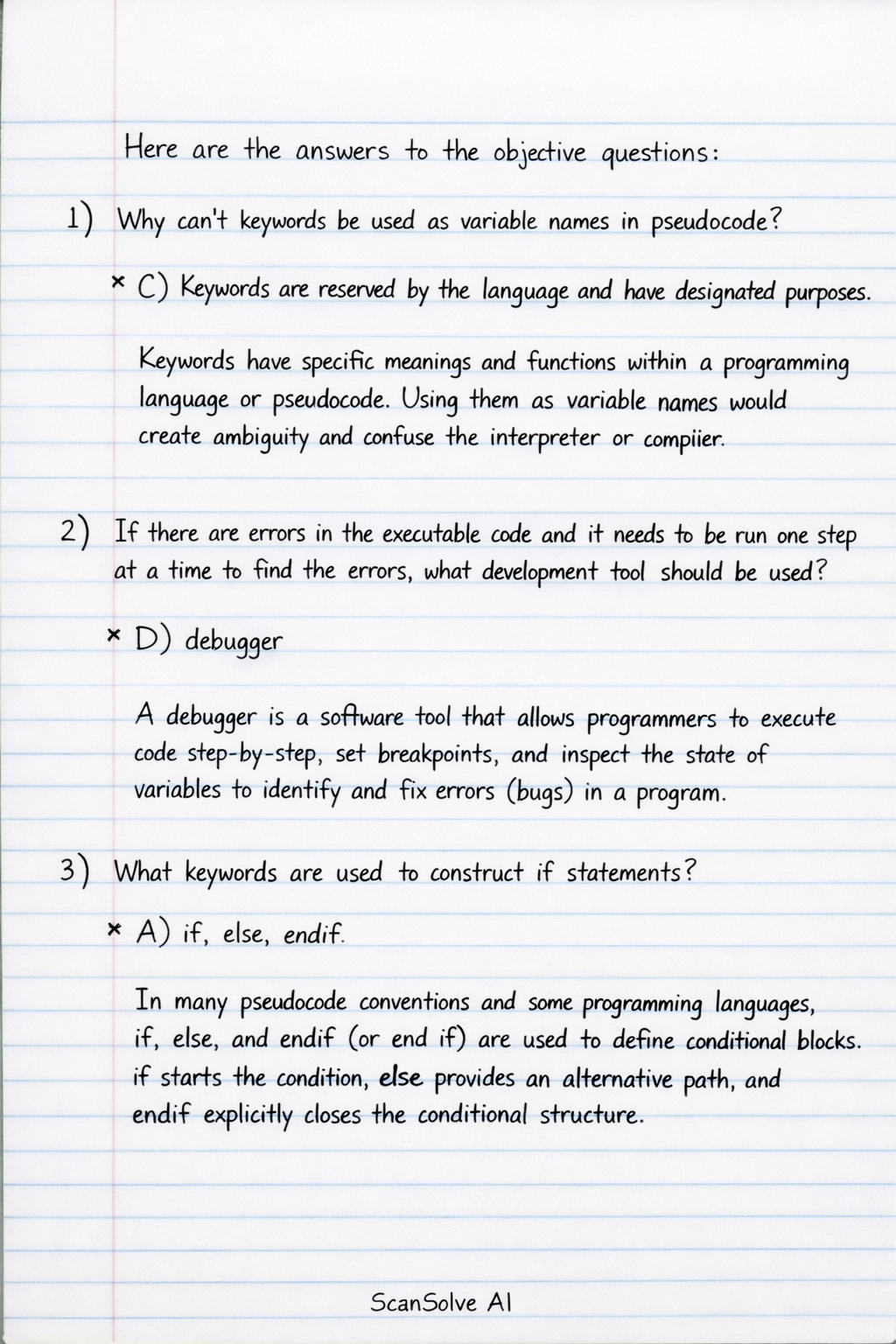 In many pseudocode conventions and some programming languages, if, else, and endif (or end if) are used to define conditional blocks. if starts the condition, else provides an alternative path, and endif explicitly closes the conditional structure.