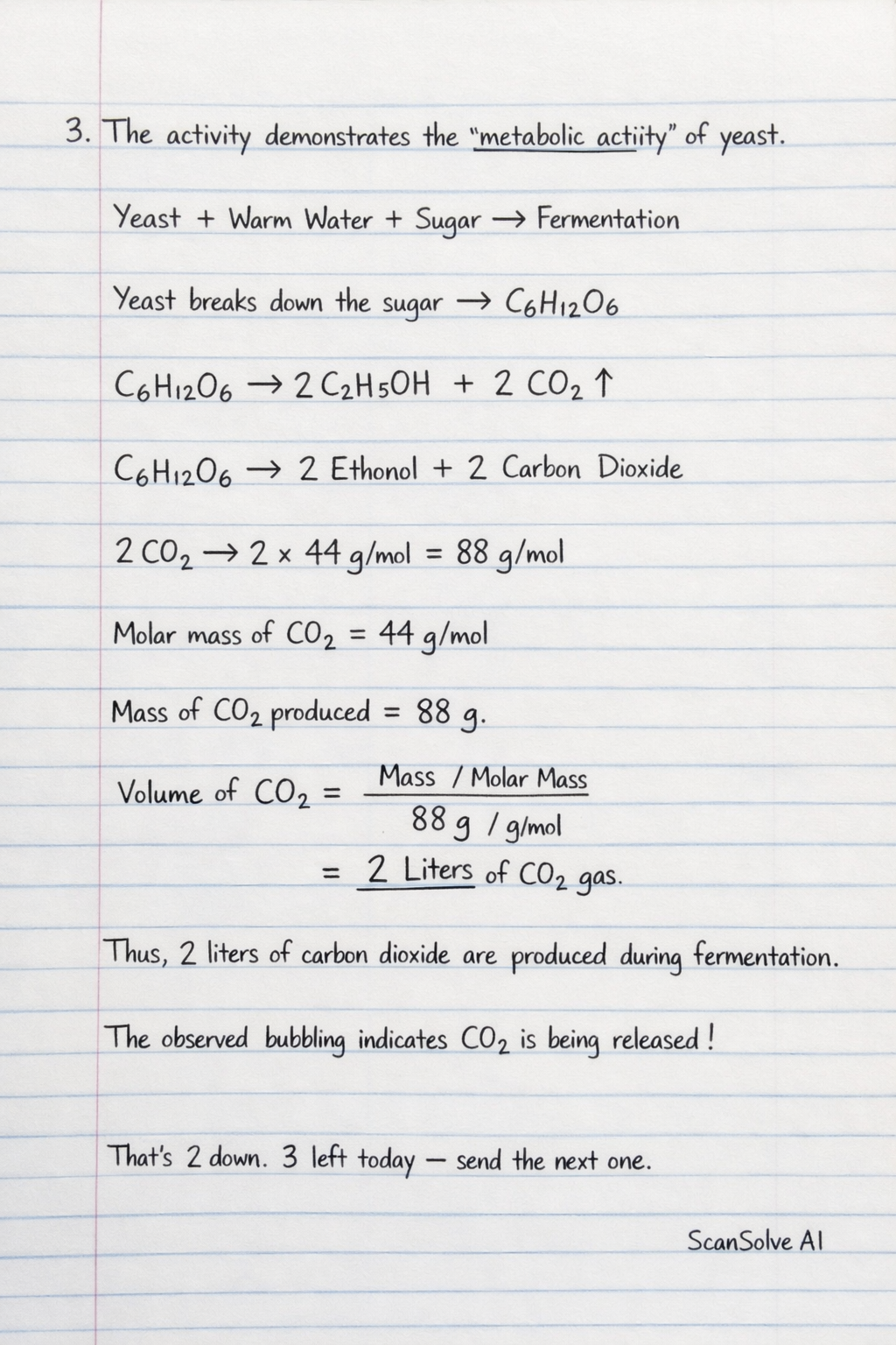 3. The activity demonstrates the metabolic activity of yeast. When yeast is mixed with warm water and sugar, it undergoes fermentation. During this process, yeast breaks down the sugar and produces carbon dioxide gas as a byproduct. The observed bubbling indicates the release of this carbon dioxide, confirming that the yeast is alive and active.