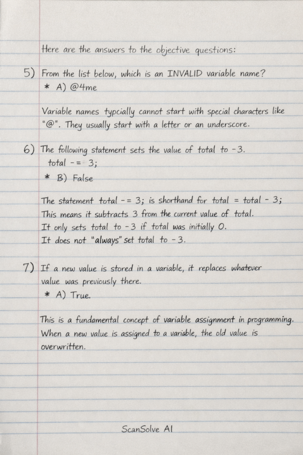 6) The following statement sets the value of total to -3. total -= 3;