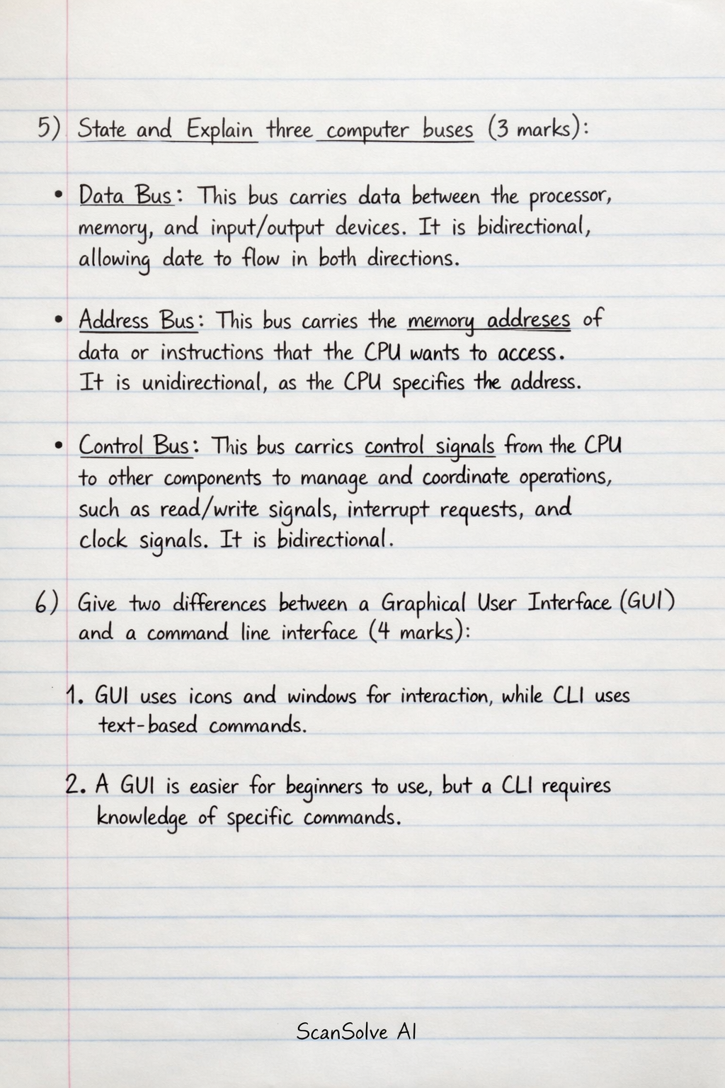 5) State and Explain three computer buses (3 marks)