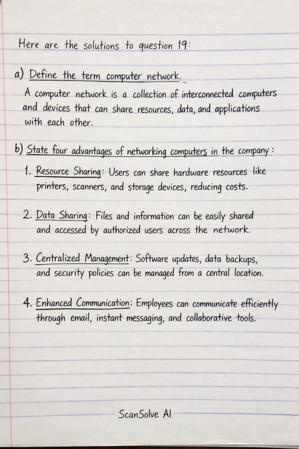 1. Resource Sharing: Users can share hardware resources like printers, scanners, and storage devices, reducing costs.